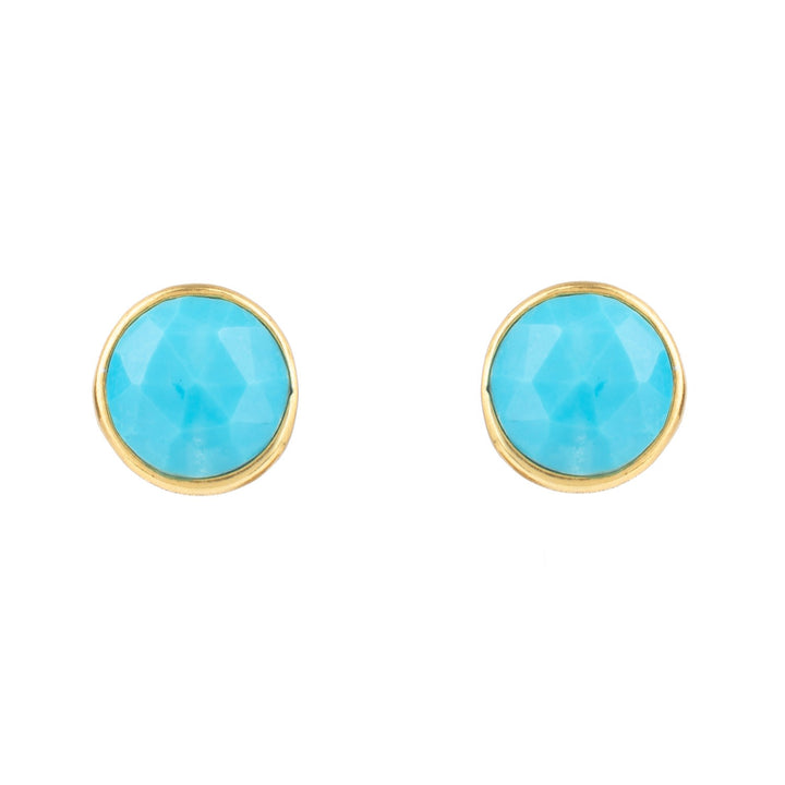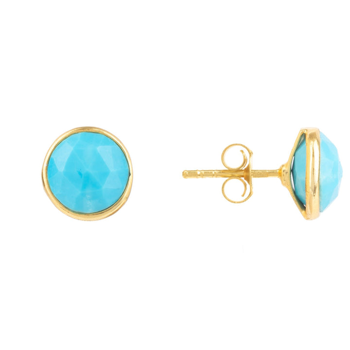 These stud earrings are made from 925 sterling silver that is gold-dipped. They are set with a turquoise stone and another natural stone.