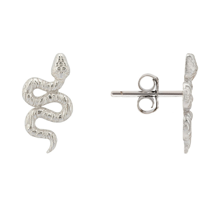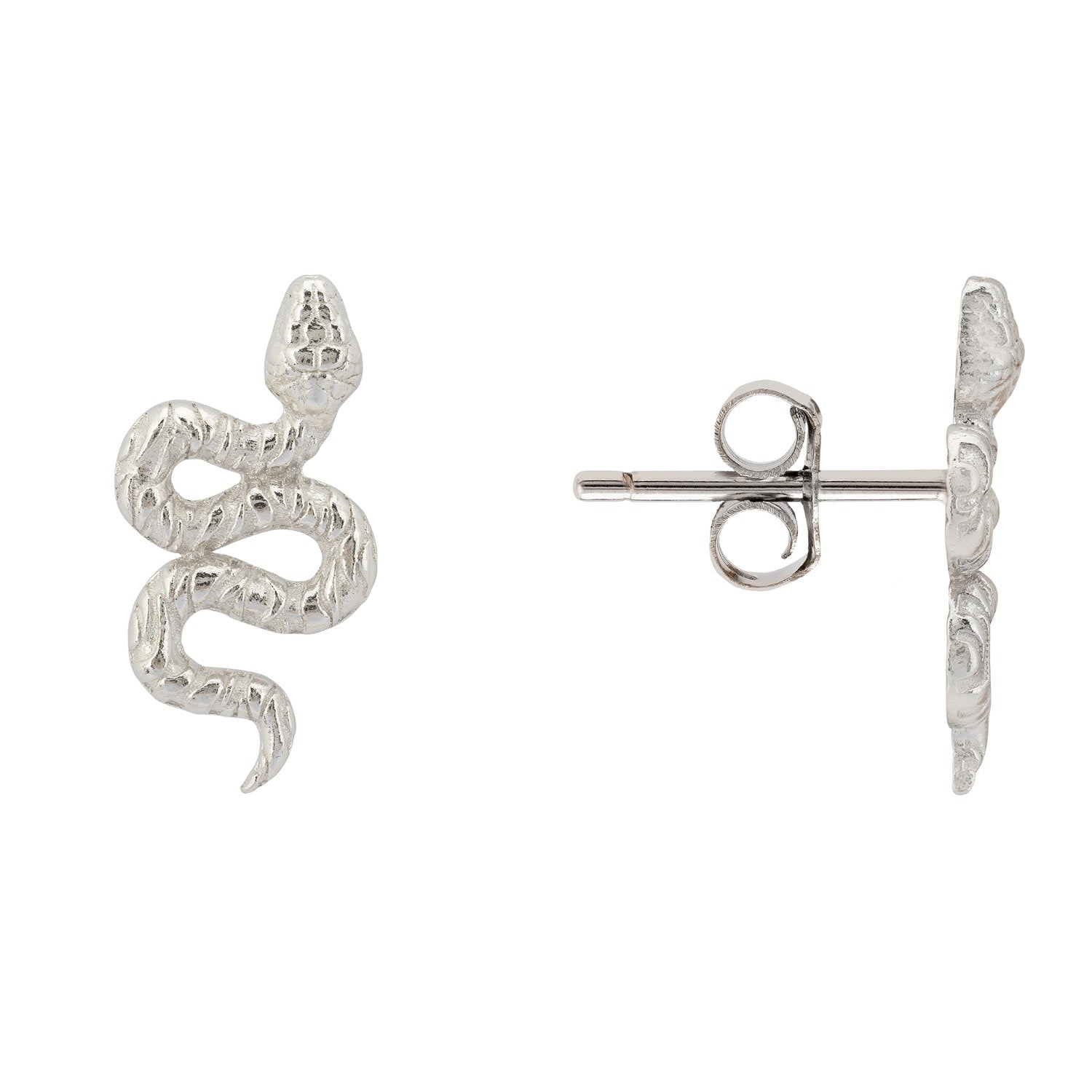 These Coiled Cobra Snake Stud Earrings by Latelita channel the mystique and symbolism of the serpent. Exquisitely handcrafted in sterling silver, each earring captures the cobra in a poised coil, detailed with textural finishes that echo the scales of this powerful creature. Revered as a symbol of transformation, healing, and renewal, the snake motif makes these earrings not only striking adornments but also meaningful talismans. A statement of strength and personal growth, they elevate everyday styling with intrigue and depth.