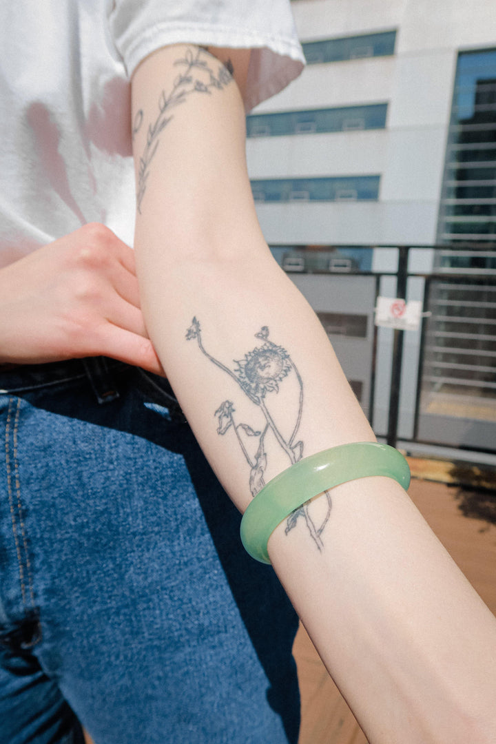 This Agave Classic Cyan Jade Stone Bangle by Seree is the perfect entry-level piece for anyone new to jade jewelry, blending timeless elegance with effortless style. The bangle's clean, classic design and beautiful cyan hue make it a versatile accessory that pairs seamlessly with any casual outfit, from a simple white tee to your favorite jeans. It elevates your look and adds a touch of sophistication, making you feel perfectly dressed without any effort.