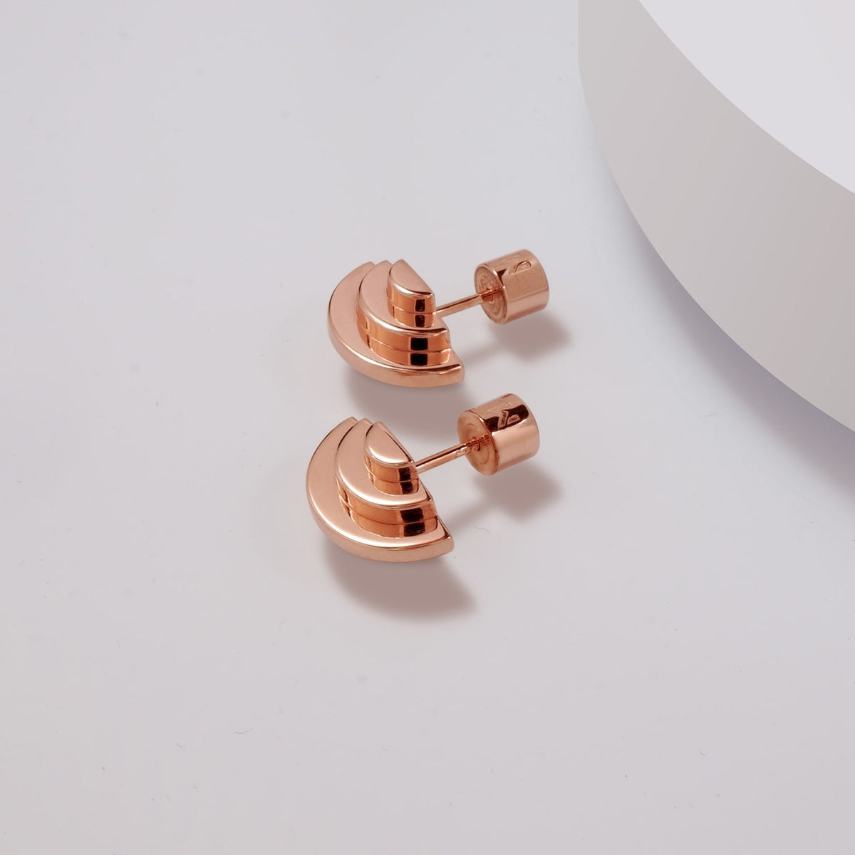 Multi Semicircle Geometric Stud Earrings - Rose Gold
