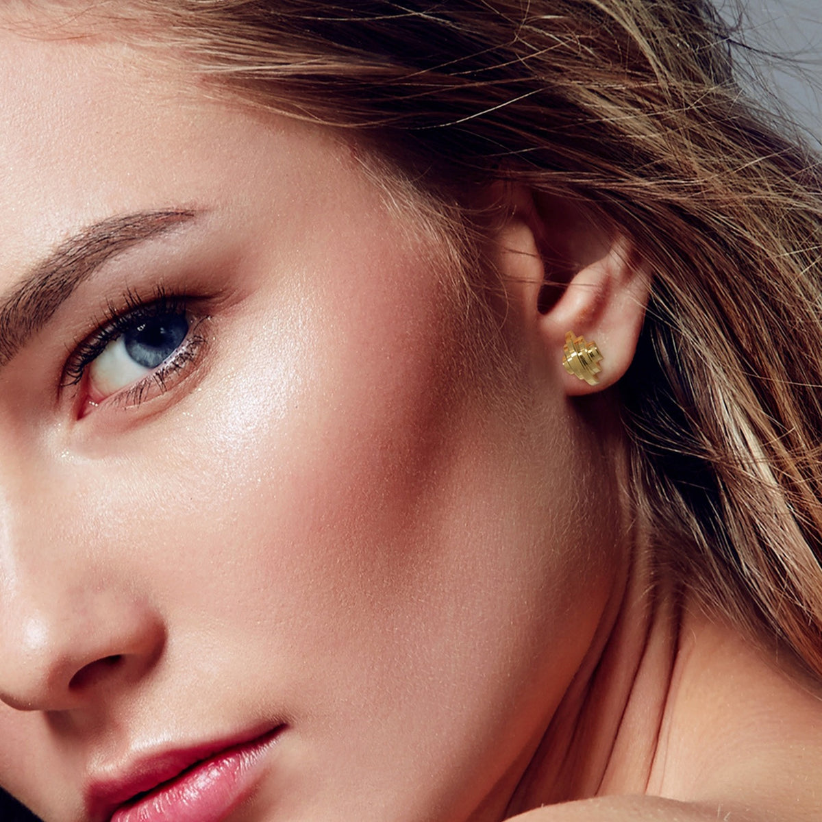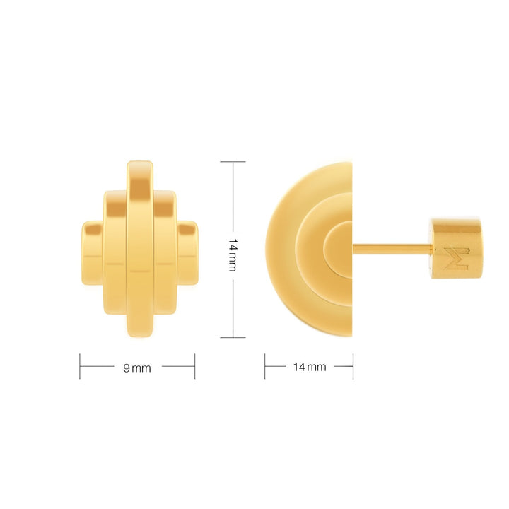 These stud earrings are made from 18K vermeil. They feature a geometric semicircle design.
