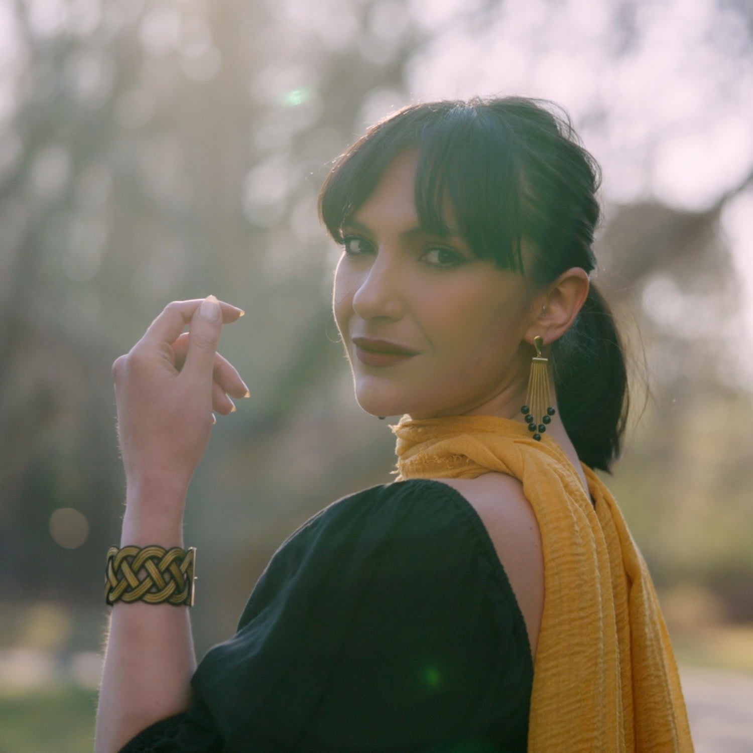 Celine Bracelet by Raízes is a bold statement piece inspired by Copacabana’s iconic boardwalk. Its sculptural design combines handwoven golden grass and black rope fabric, blending natural elegance with cultural flair. This hypoallergenic and nickel-free bracelet is perfect for adding rhythm and style to any look with its striking aesthetic and 18K gold-plated recycled brass lobster claw closure.