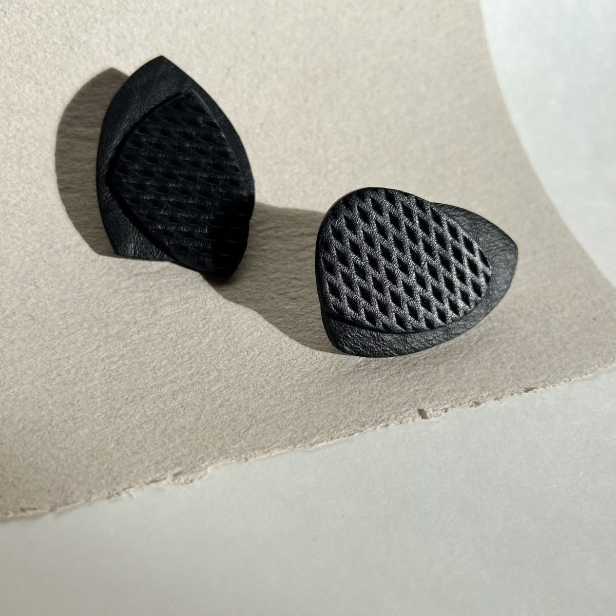 The Meld Leather Stud Earrings by Waiwai are bold and eco-conscious, crafted from upcycled leather in striking black organic forms. Their interplay of textures creates an artful, modern accessory perfect for making a statement.