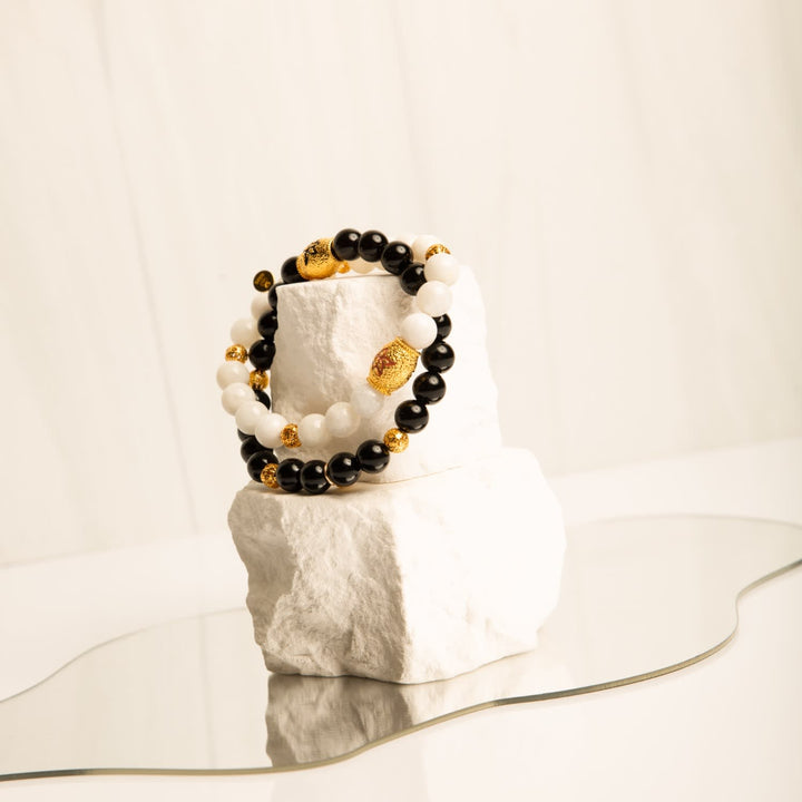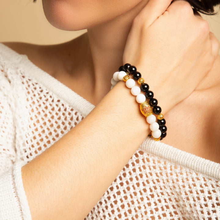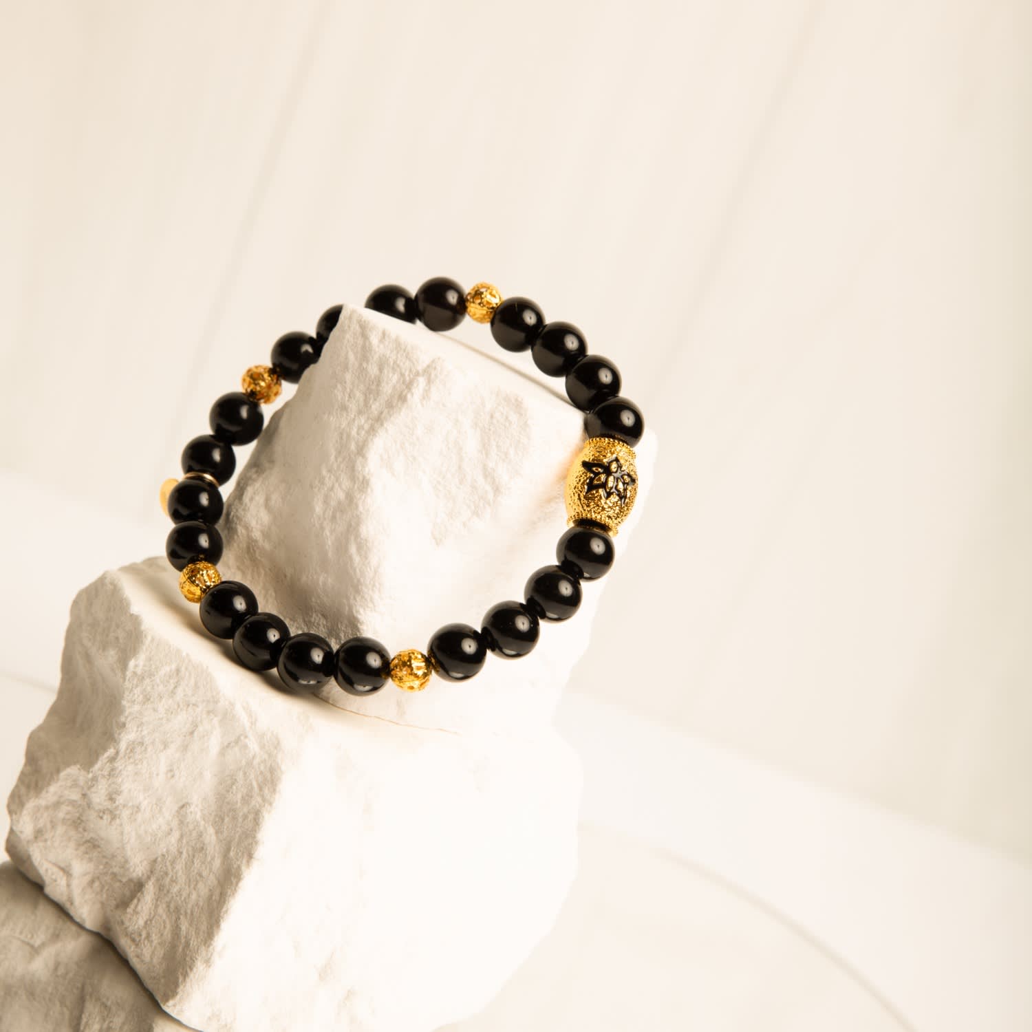 Protection And Strength Onyx Lotus Beaded Bracelet