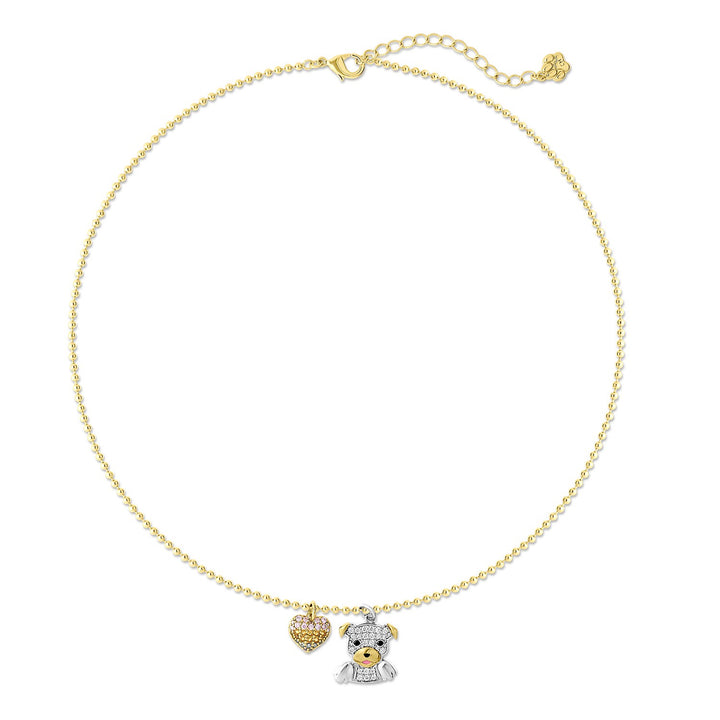 Cloud Haven Cz Pittie & Rainbow Heart Pendant Necklace