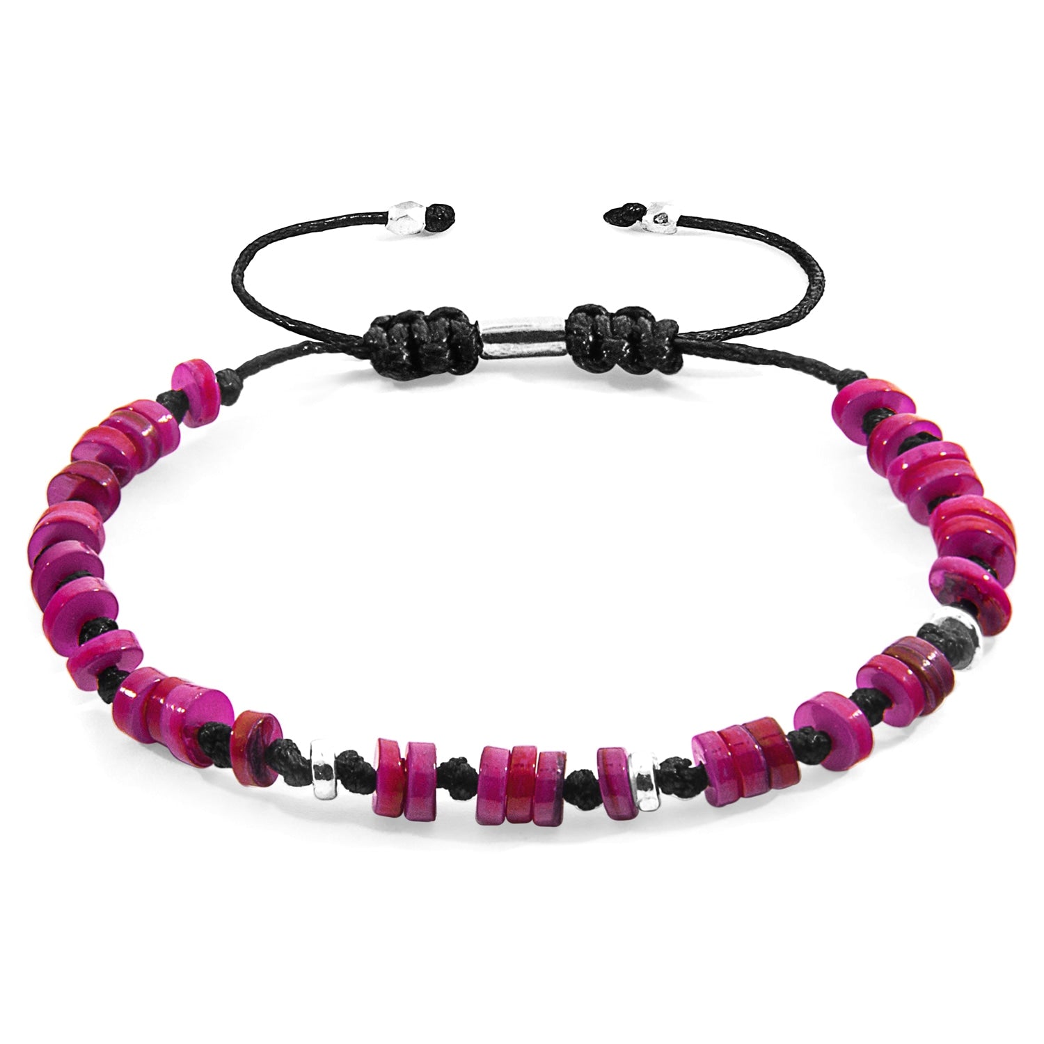 This Pink Hailey Silver & Freshwater Shell Skinny Macrame Bracelet by Anchor & Crew is a modern-minimalist piece skilfully handcrafted in Great Britain. It features 6mm diameter genuine heishi-shaped freshwater shell beads in a vibrant pink hue. The adjustable macrame drawstring clasp is a versatile addition, allowing it to fit a variety of wrist sizes while the solid .925 sterling silver components add a touch of durability and timeless quality.