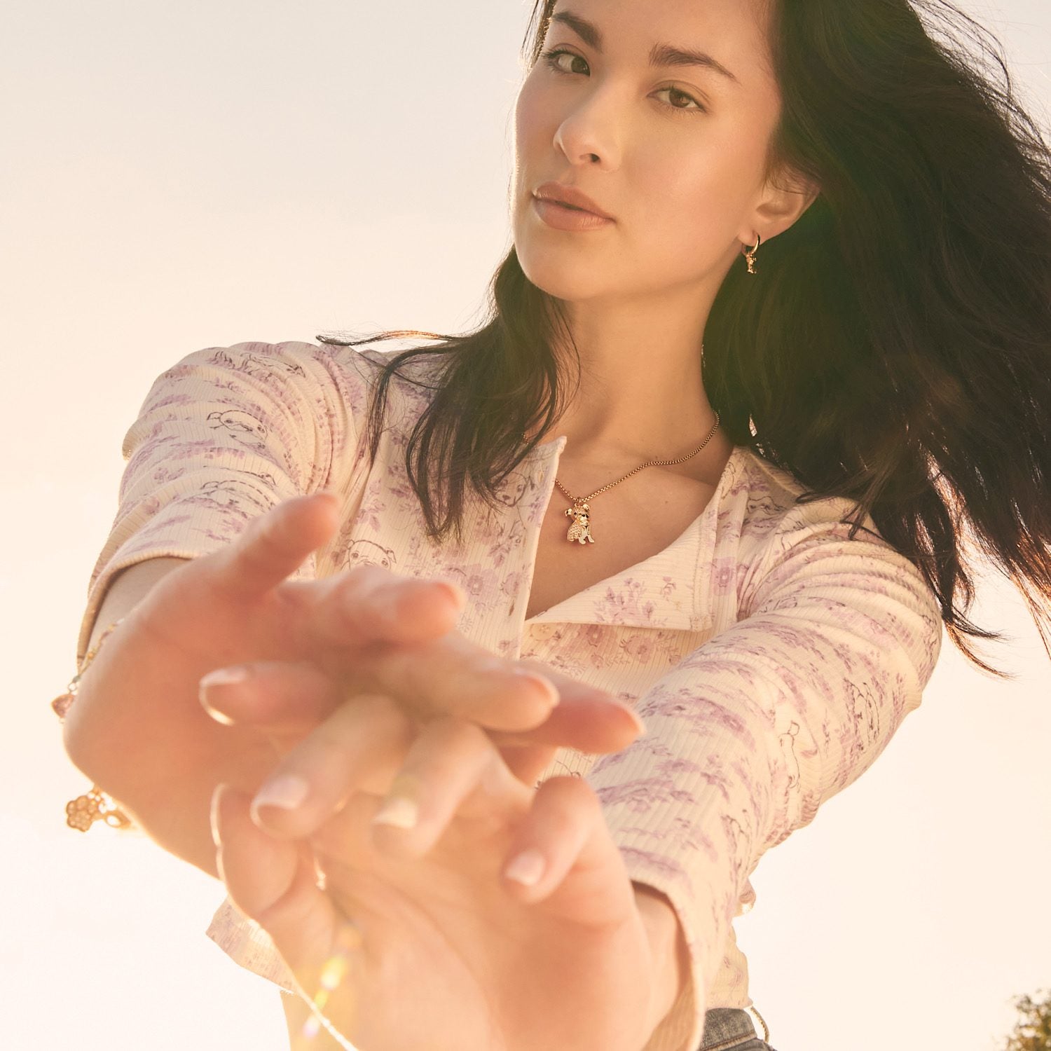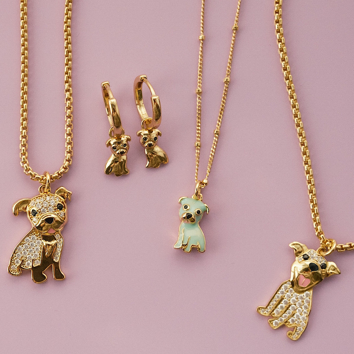 The Cloud Haven Mini Cz Bulldog Pendant Necklace by Cloud Haven is an adorable and stylish accessory. This necklace features a custom Cz studded Bulldog pendant hanging from a dainty chain. It is made from high-quality 24K gold plated brass and has a lobster closure, making it a sweet and personal piece.