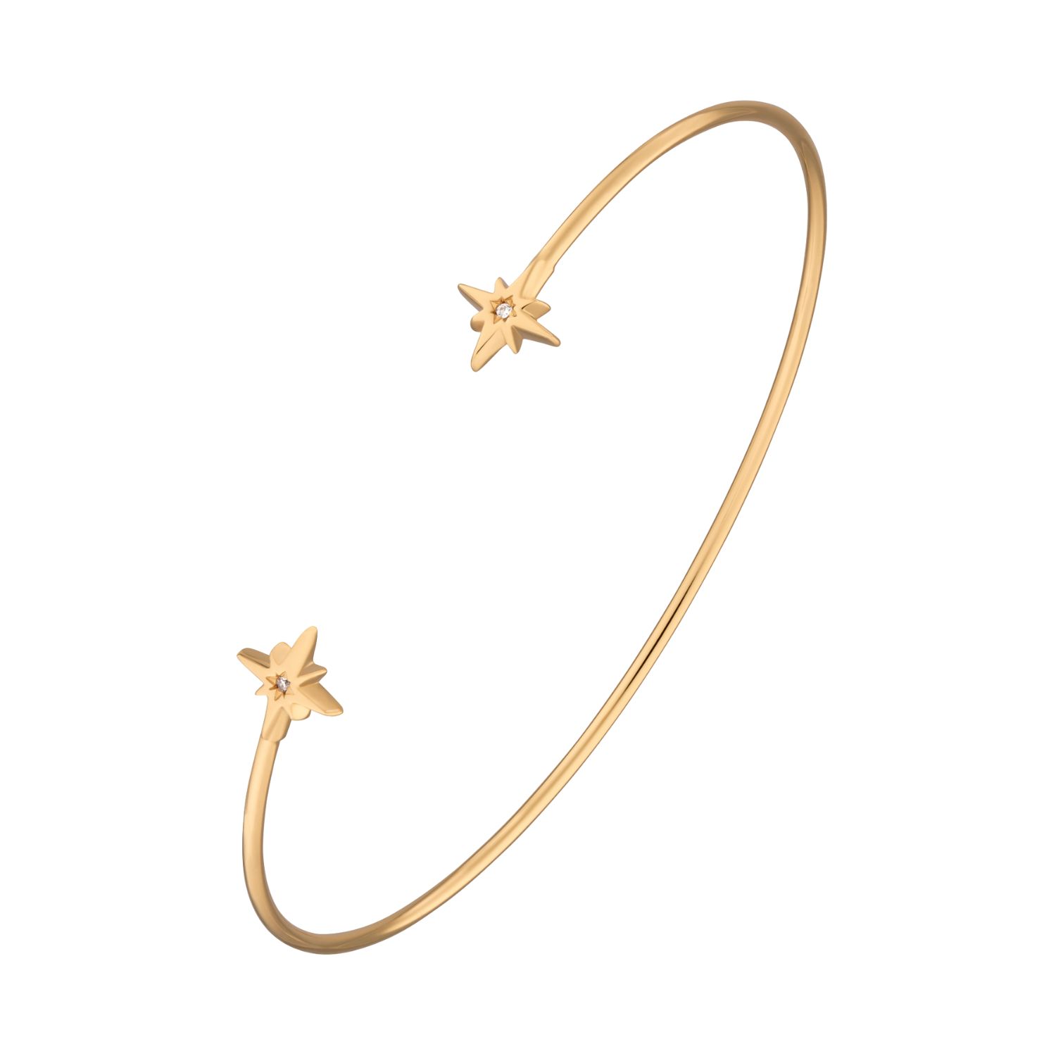 18k gold-plated eco-brass with clear cubic zirconia stones. Adjustable open bangle.