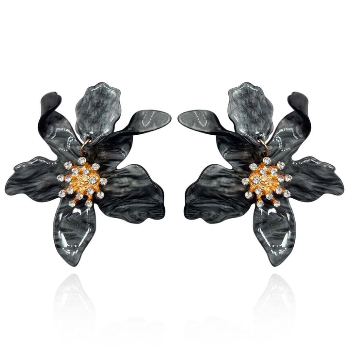 Hematite Colored Floral Resin Drop Earrings