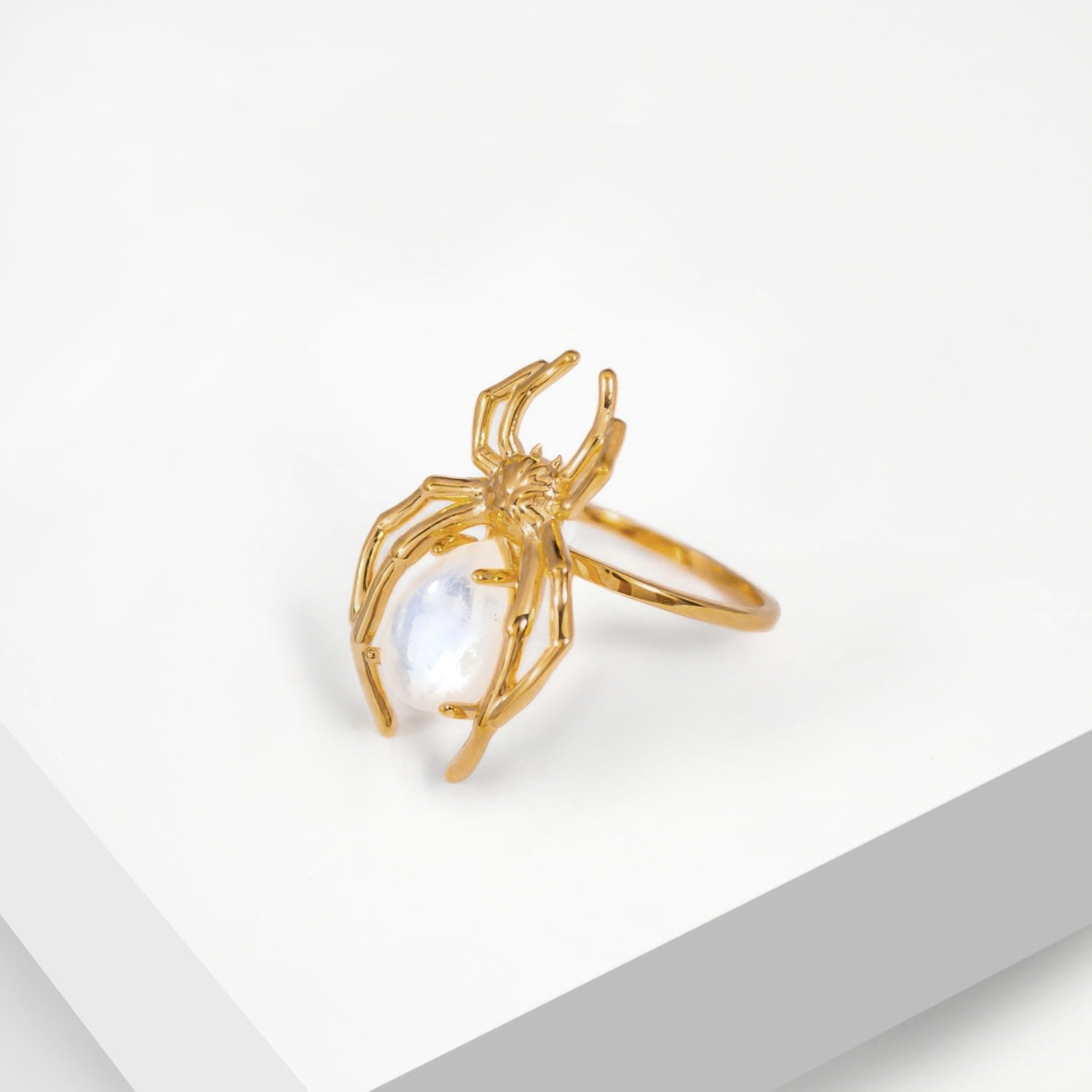 Gold Vermeil Spider & Moonstone Stacking Ring