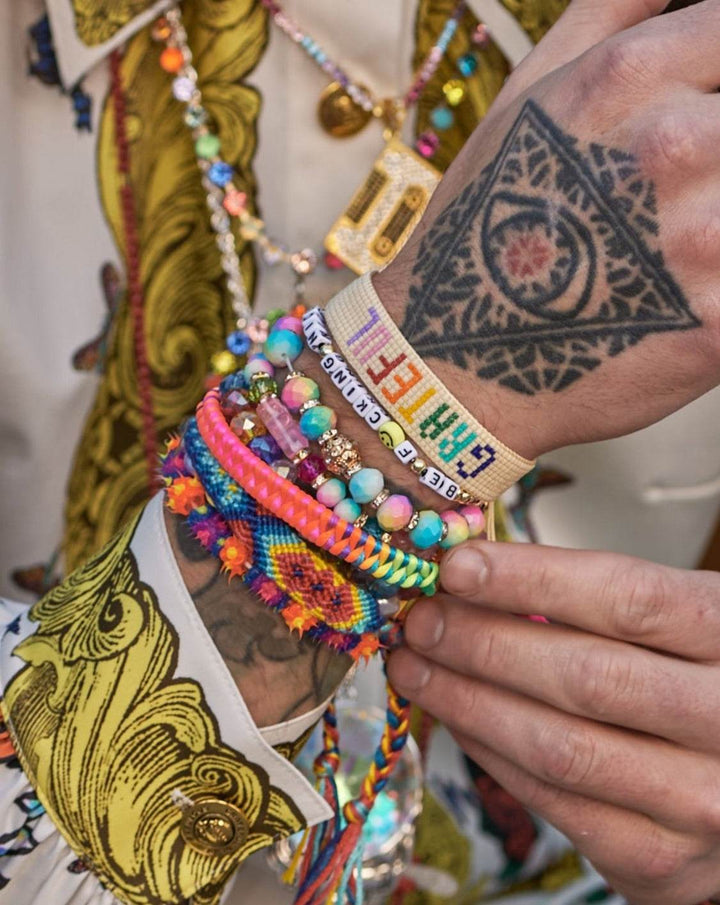 This From The Lot Bracelet Set by Meghan Fabulous is a vibrant tribute to individuality and community. Comprising 14 handmade bracelets—woven, beaded, and charm-accented—it’s designed for stacking, trading, or gifting. With colors and symbols inspired by festival spirit, each set carries a story of joy and togetherness.