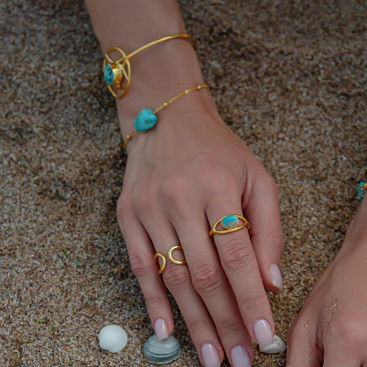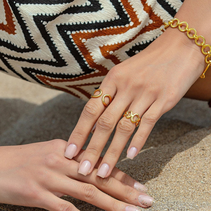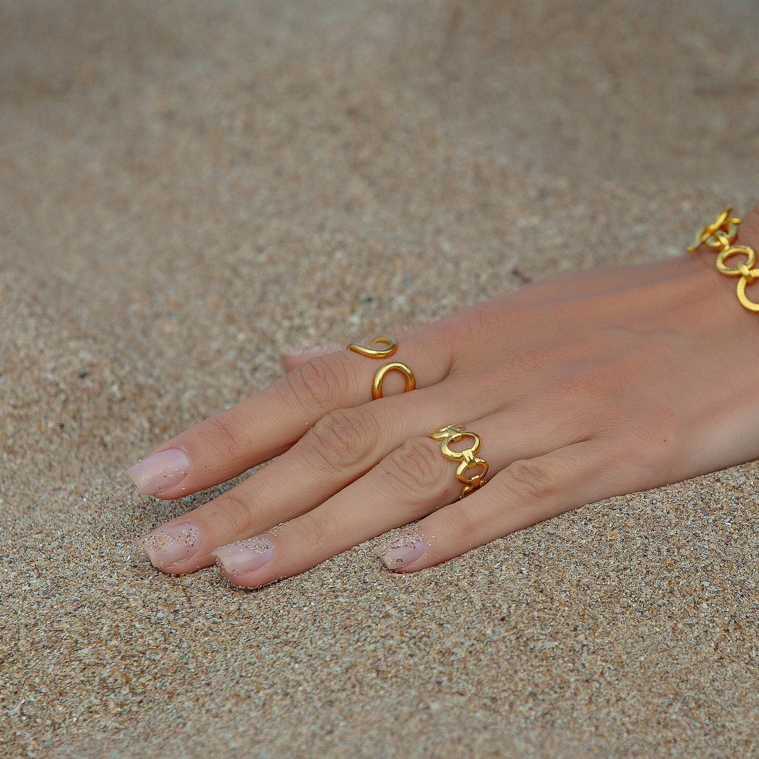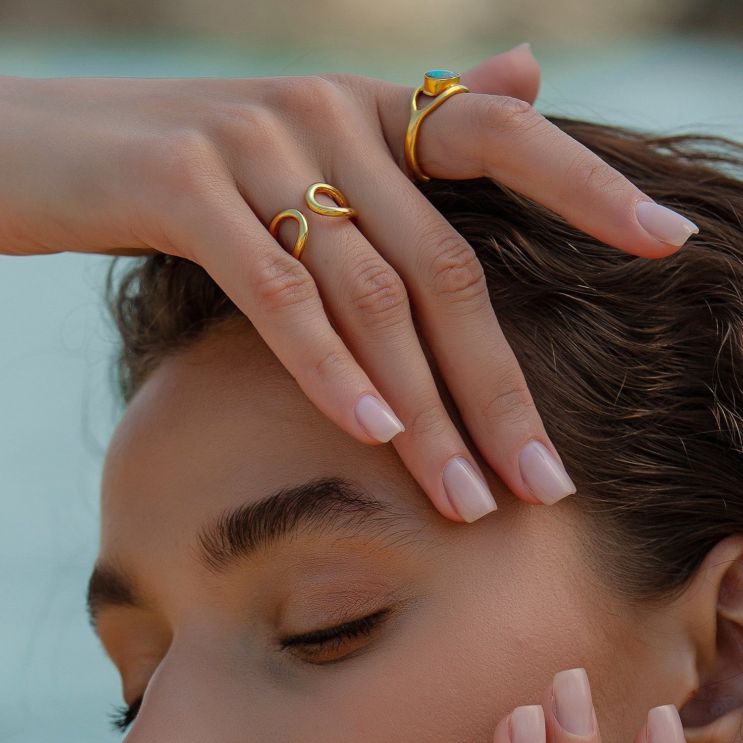This Horseshoe Gold Wrap Ring by Mejoma is a touch of elegance that adds subtle sophistication to any look. The unique horseshoe or crescent design makes it a standout piece. Handcrafted with high-quality materials, this ring is a must-have addition to any jewelry collection, perfect for any occasion. It embodies a refined and minimalist style.