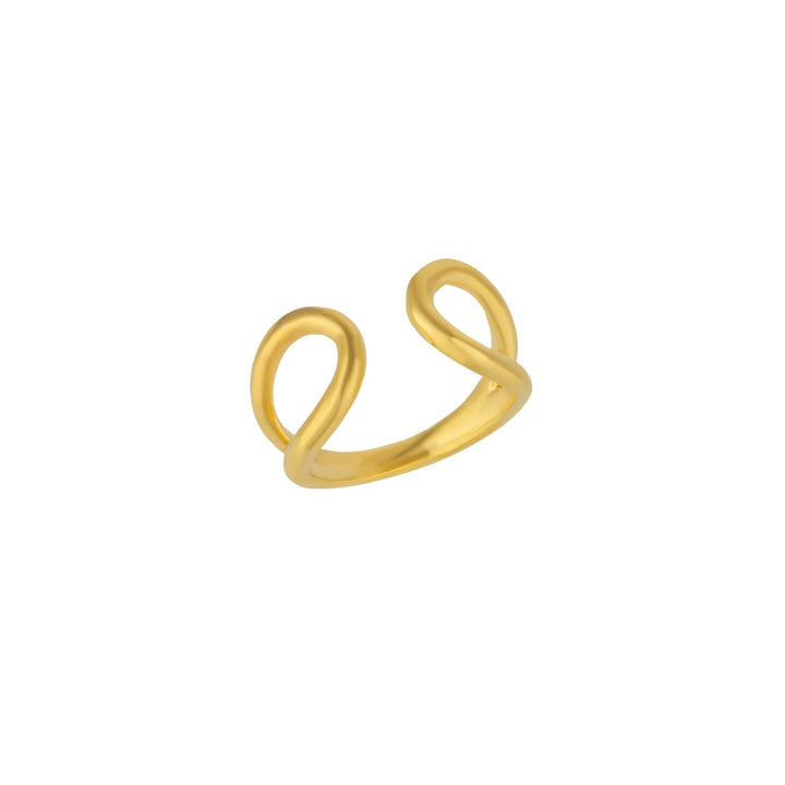 This ring is a wrap-style design crafted from a gold-toned metal.