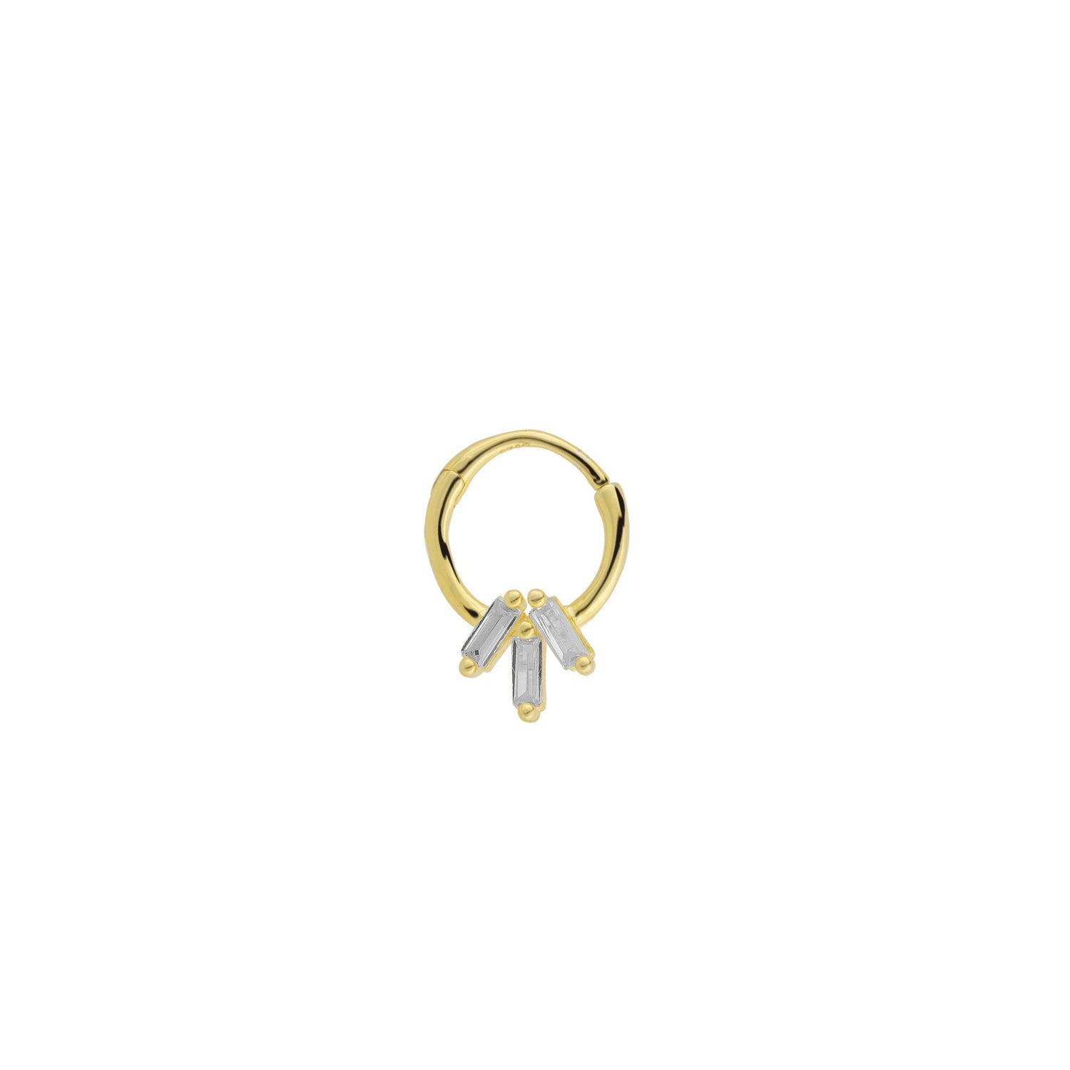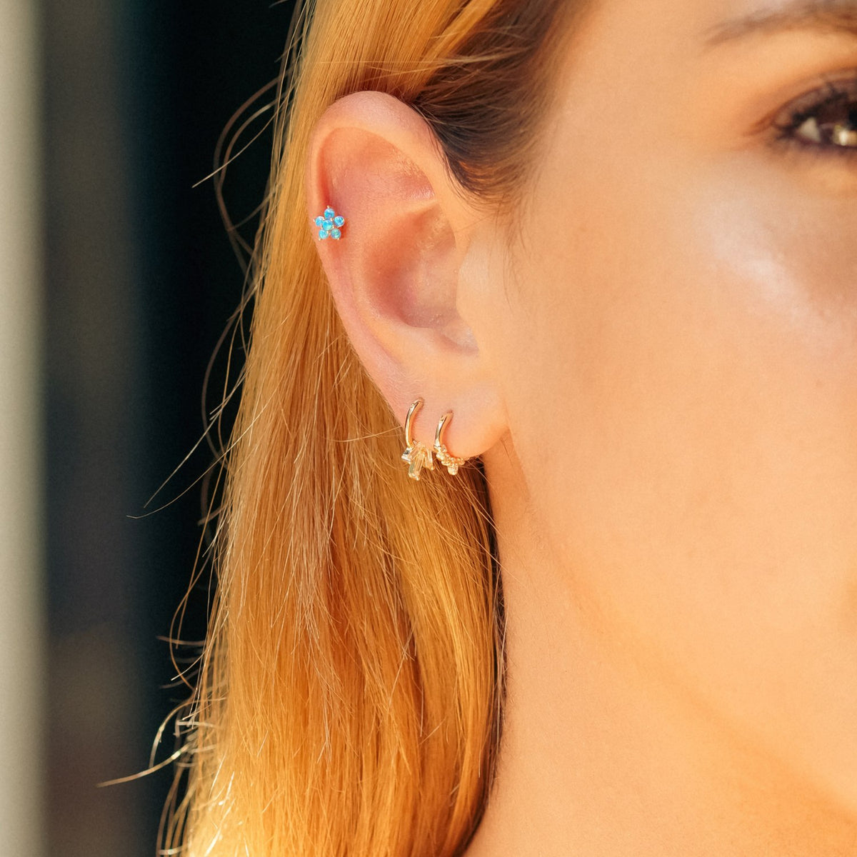 These Sterling Silver Baguette Gemstones Helix Tragus Huggie Earrings by Spero London are a perfect blend of luxury and understated elegance. Adorned with beautiful baguette-shaped gemstones, these huggie earrings add a touch of sophisticated sparkle to your helix or tragus piercing. They are a stylish yet subtle way to showcase your unique style and elevate your piercing game.