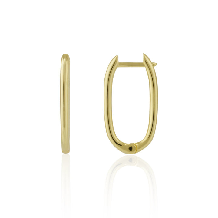 Crafted from recycled 925 sterling silver with a gold-tone finish, these earrings feature an elongated hoop design. The hinged-back closure ensures a secure fit.