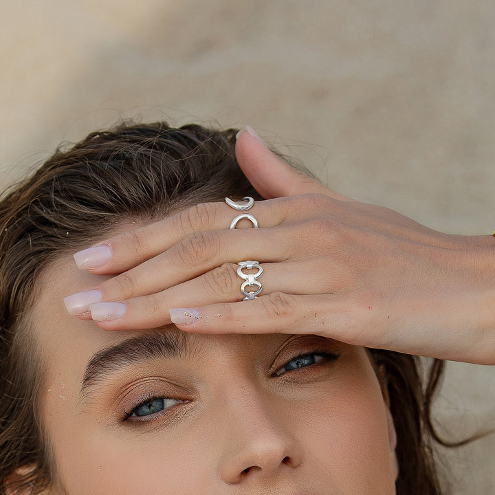 This wrap ring is crafted from high-quality silver with a unique crescent design.