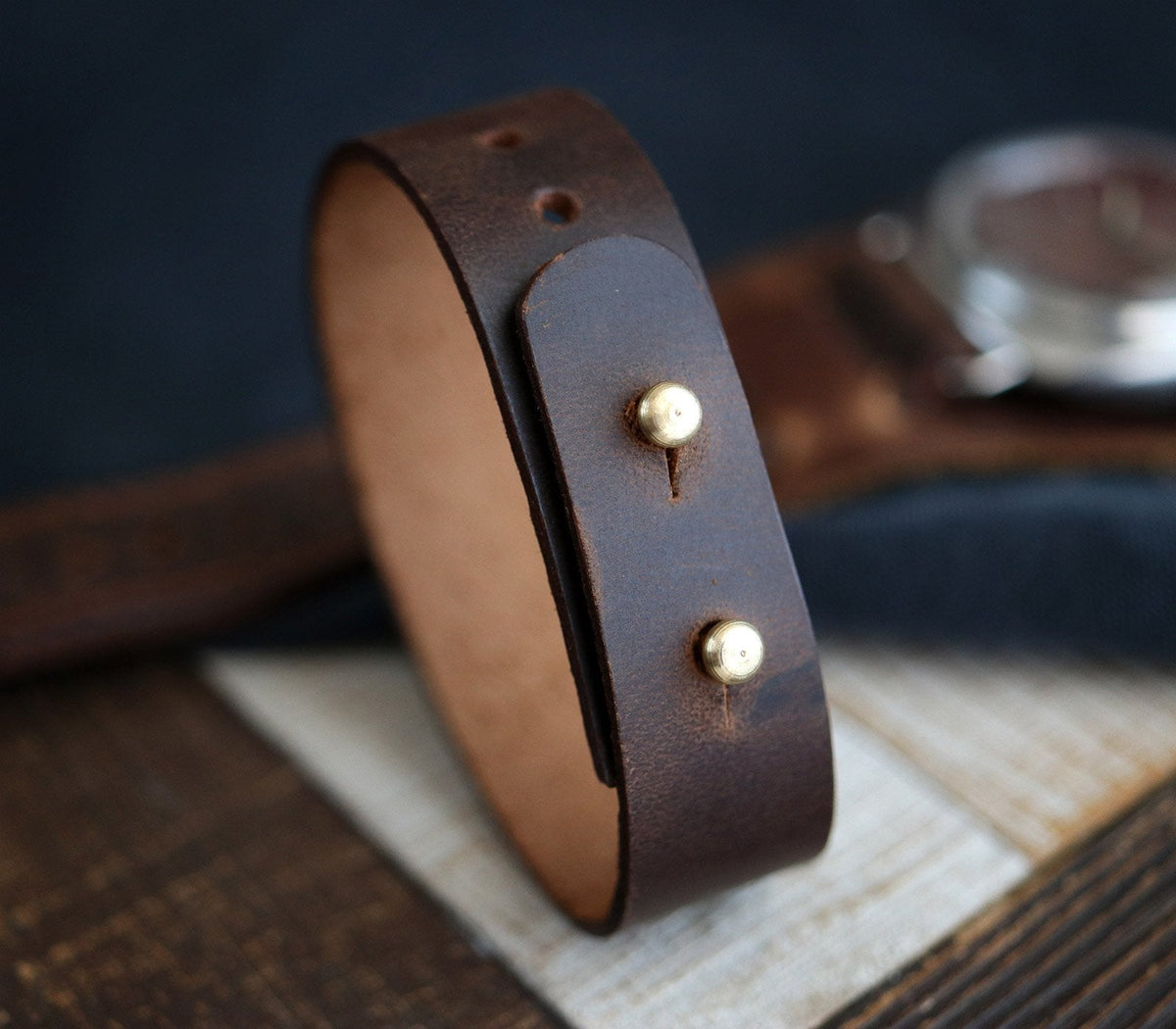 This Adjustable Minimalist Leather Bracelet - Brown by Roarcraft is a clean and simple accessory that offers a modern style. The brown leather has a unique character, with natural blemishes that add to its charm. This minimalist bracelet is a perfect choice for those who appreciate understated elegance and natural beauty.