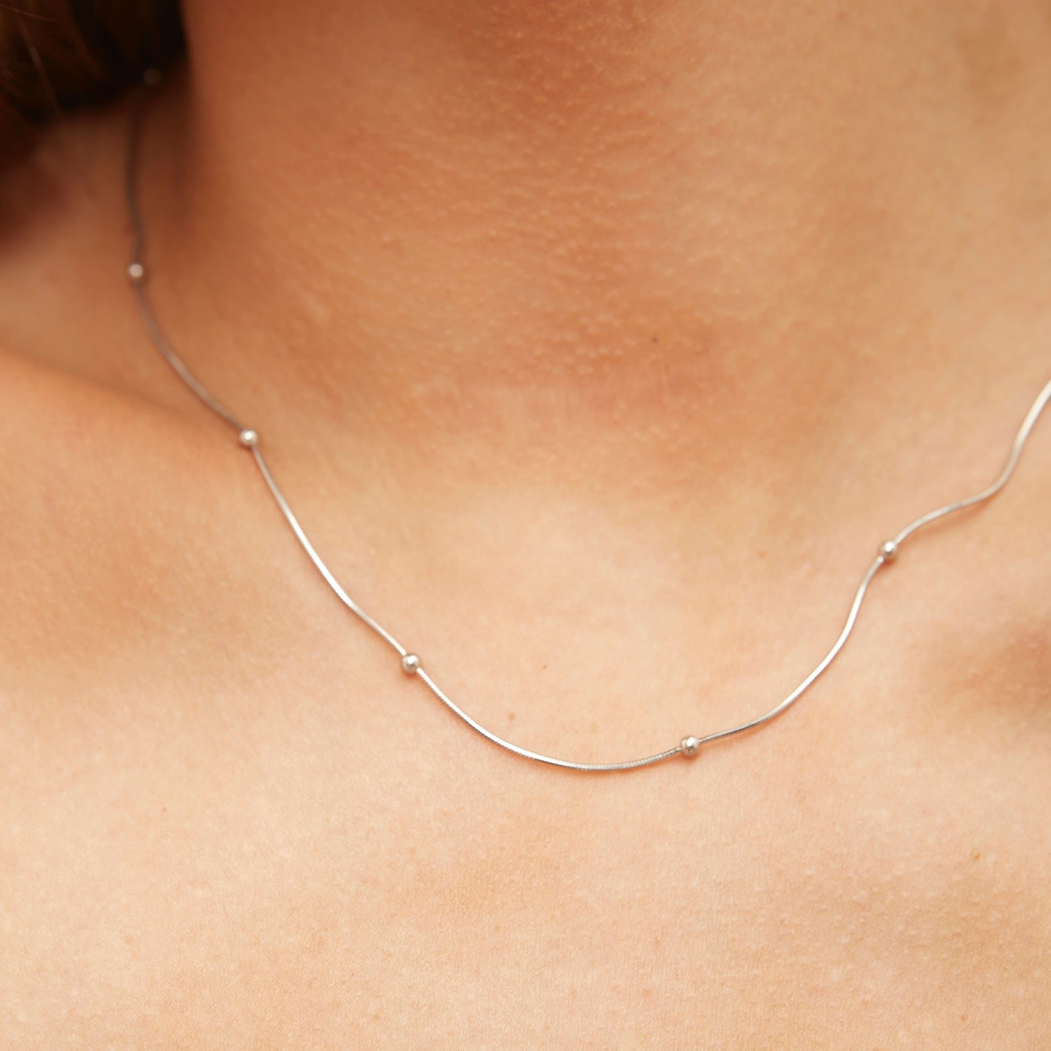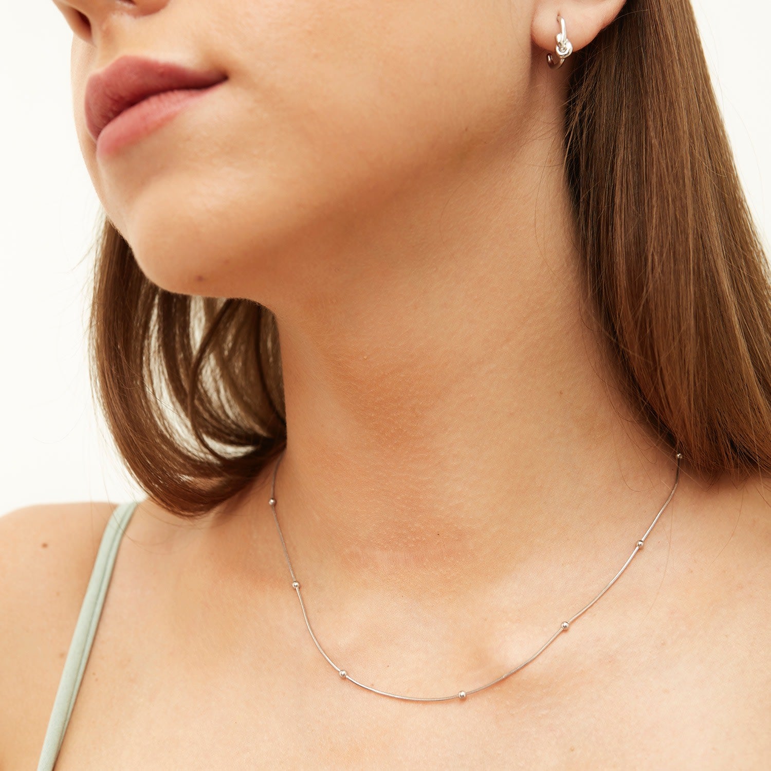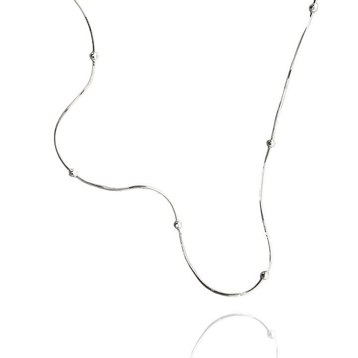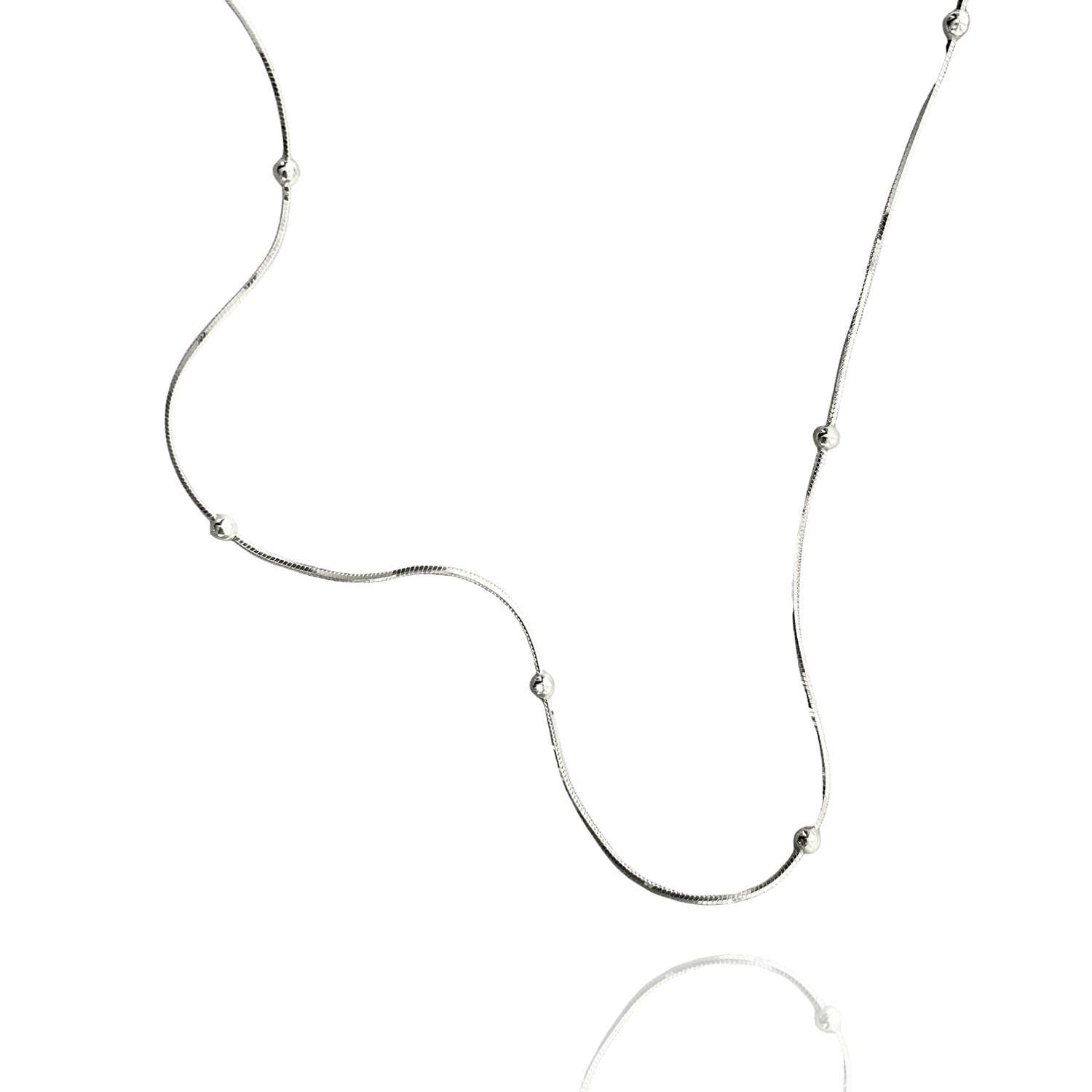 Italian Fine Chain Sterling Silver Satellite Beaded Necklace - Silver