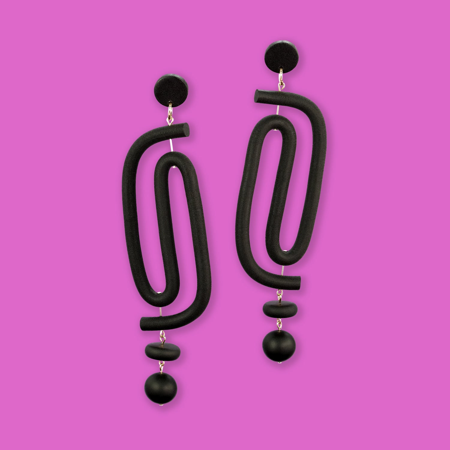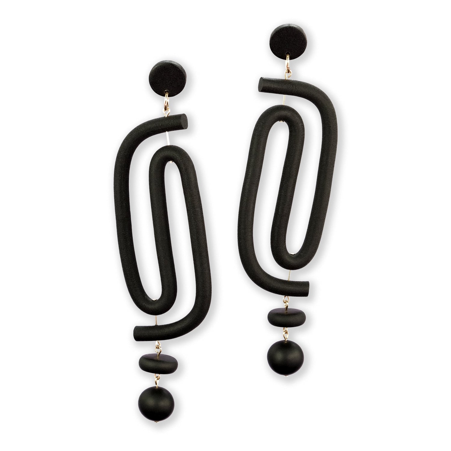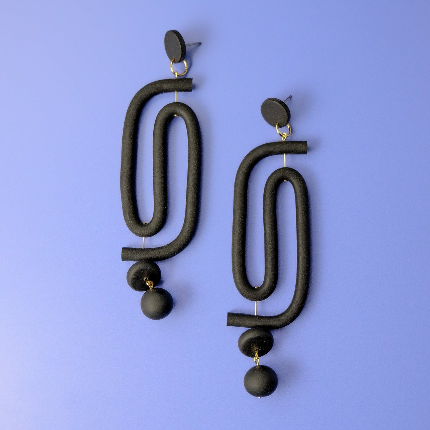These Labyrinth Dangly Statement Earrings by By Chavelli are sure to make a statement. Hand-sculpted from lightweight polymer clay, their design is inspired by the Greek Key pattern and finished with two beads that add eye-catching movement. These earrings are not just accessories; they are conversation starters. Despite their size, they are remarkably light, and the use of titanium posts ensures they are suitable for even the most sensitive ears. They are a striking piece that lets your style speak volumes.