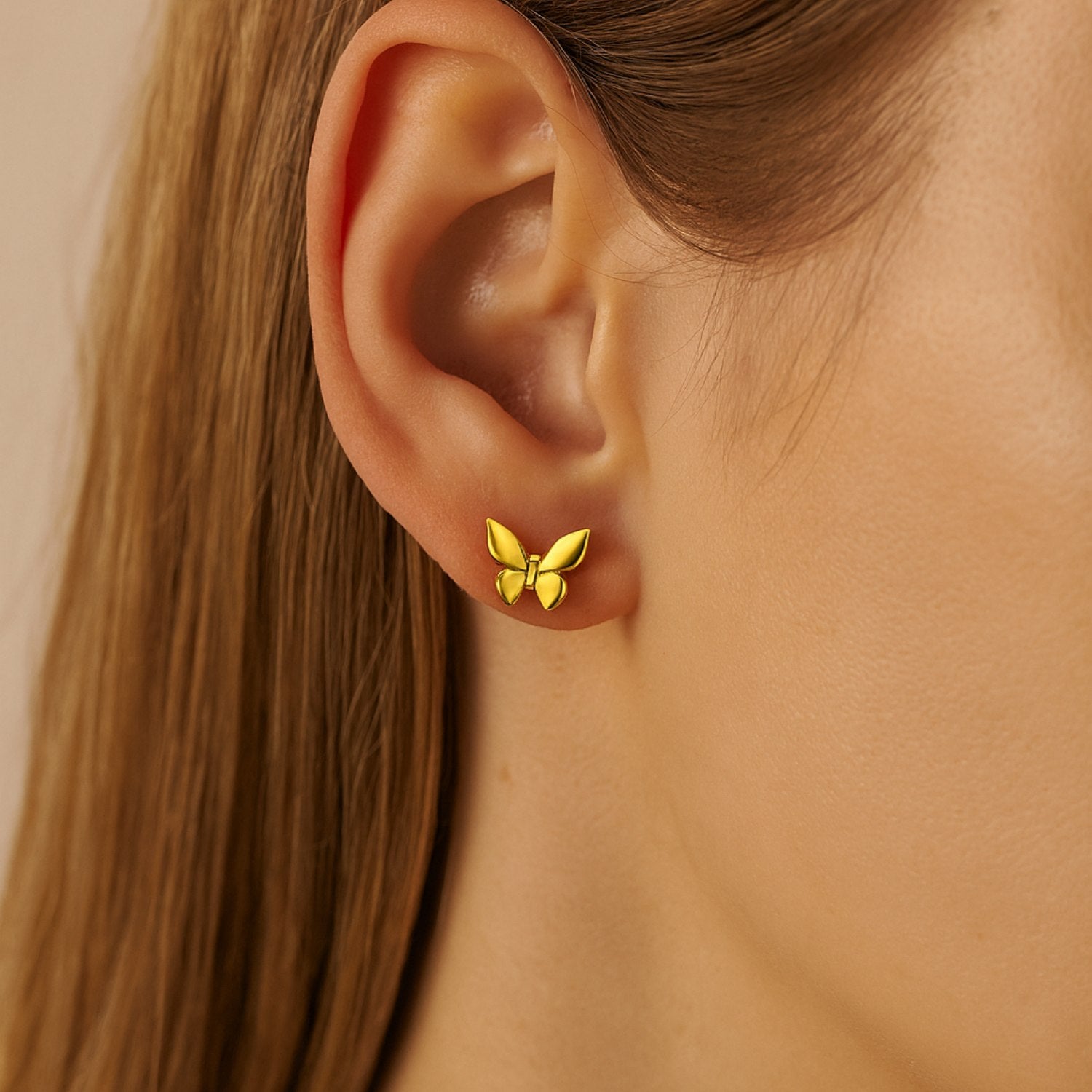 Butterfly Earrings In Gold-Plated Sterling Silver-Unaloe