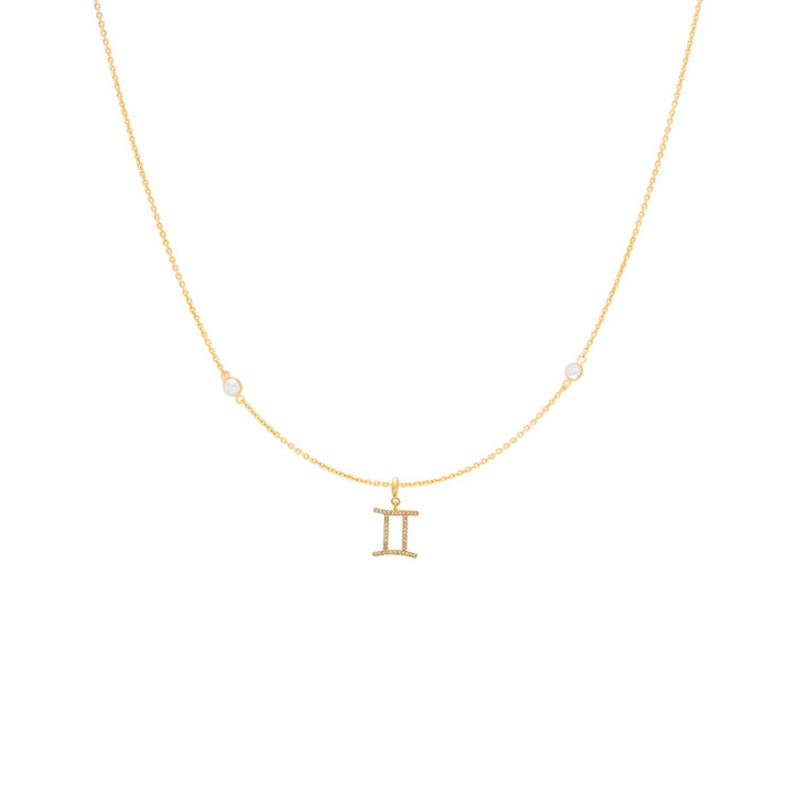 This Zodiac Horoscope Sign Gemini Symbol Necklace by Lavani Jewels is a beautiful and meaningful piece that captures the complex and contradictory nature of the Gemini sign. It is a versatile and elegant accessory that represents the twin's duality: intellectual and eloquent, yet insincere. This necklace is an ideal way to express your unique personality and enjoy novelty. With its pearl gemstone, it adds a touch of sophistication to any look while symbolizing your sign's character.