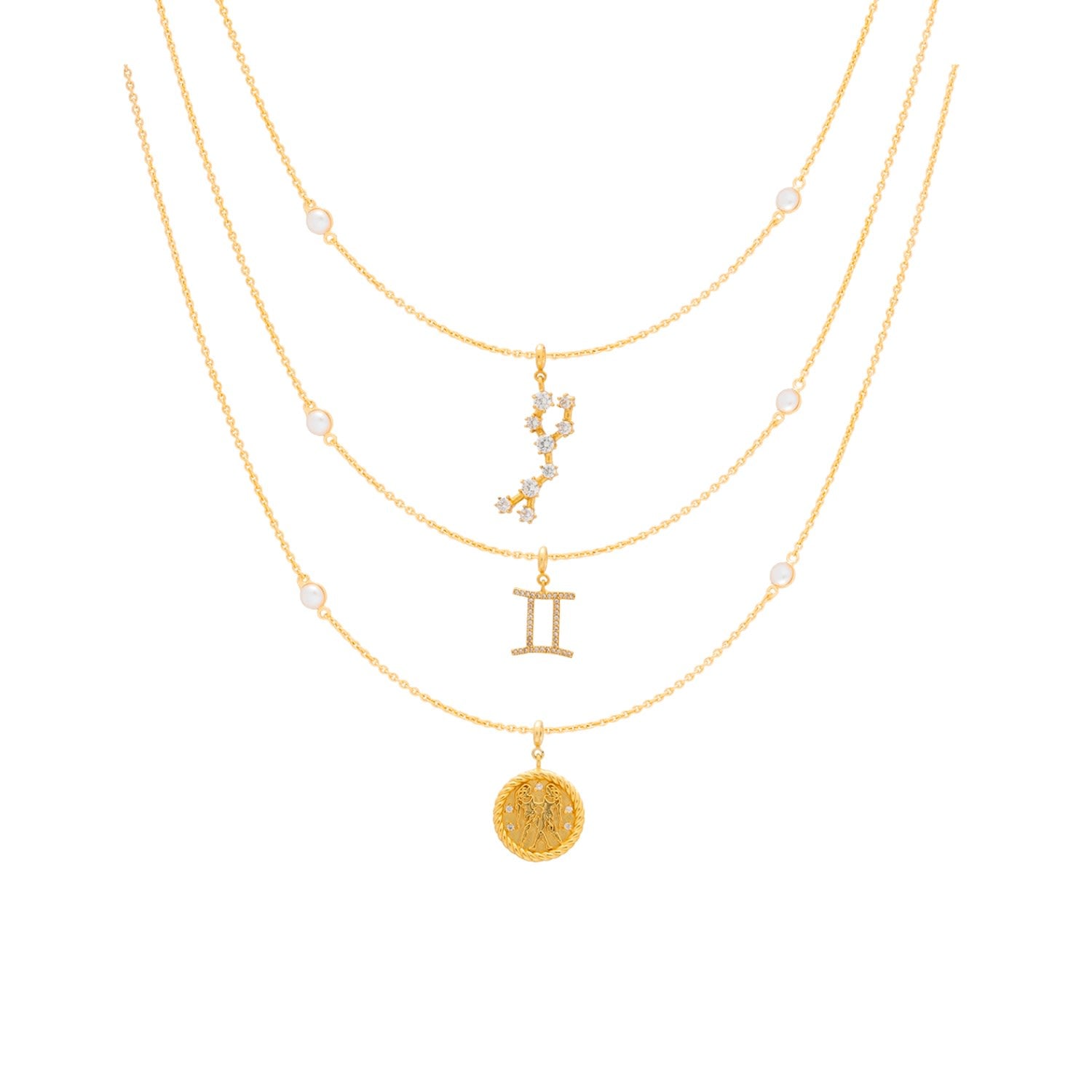 Zodiac Horoscope Sign Gemini Symbol Necklace Gold