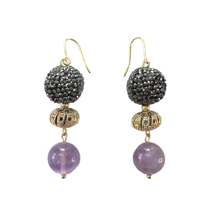 These Amethyst & Rhinestone Drop Earrings by Farra are a sophisticated and feminine accessory that combines the classic elegance of gemstones with a touch of brilliant sparkle. They feature a beautiful amethyst stone paired with shimmering rhinestones in a delicate drop design. These earrings are versatile enough to be worn with a variety of outfits, from a casual knit top to a formal dress. They embody a refined and polished style, perfect for adding a touch of color and luxury.