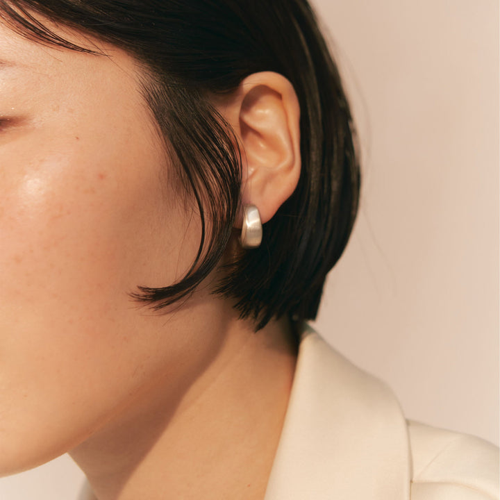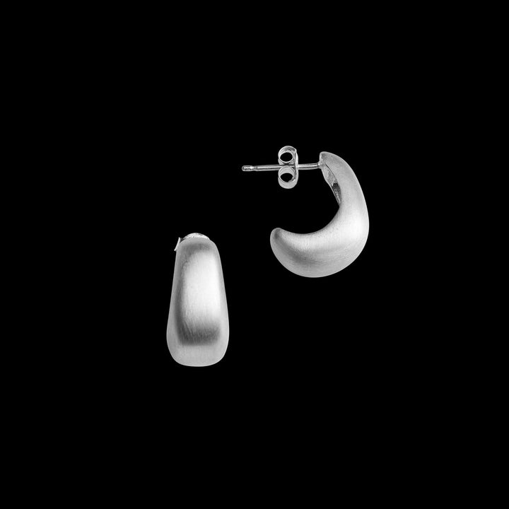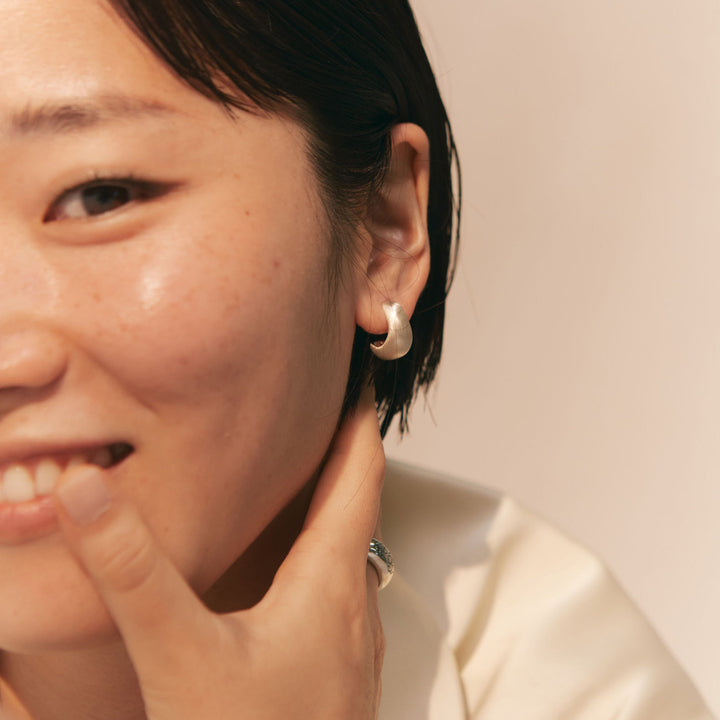 The Curved Earrings - Sterling Silver by Loupn are a graceful and wise accessory. These crescent moon-shaped earrings have a matte finish and are a symbol of moving forward in life. They are made from 925 sterling silver and are handcrafted in Korea. The earrings have a polished finish and are nickel-free.