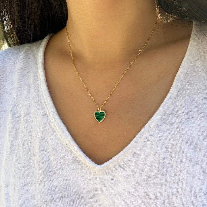 Malachite Heart Necklace With Crystals