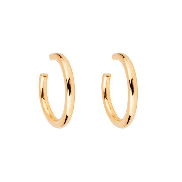 These Loretta Small Hoops Gold by Bounkit are an understated and minimalist accessory perfect for daily wear. Meticulously crafted from lightweight, premium materials, these hoops offer a harmonious blend of style and comfort. Their classic design and practical butterfly post closure make them a reliable and versatile staple in your jewelry collection, perfect for adding a touch of simple elegance to any look.