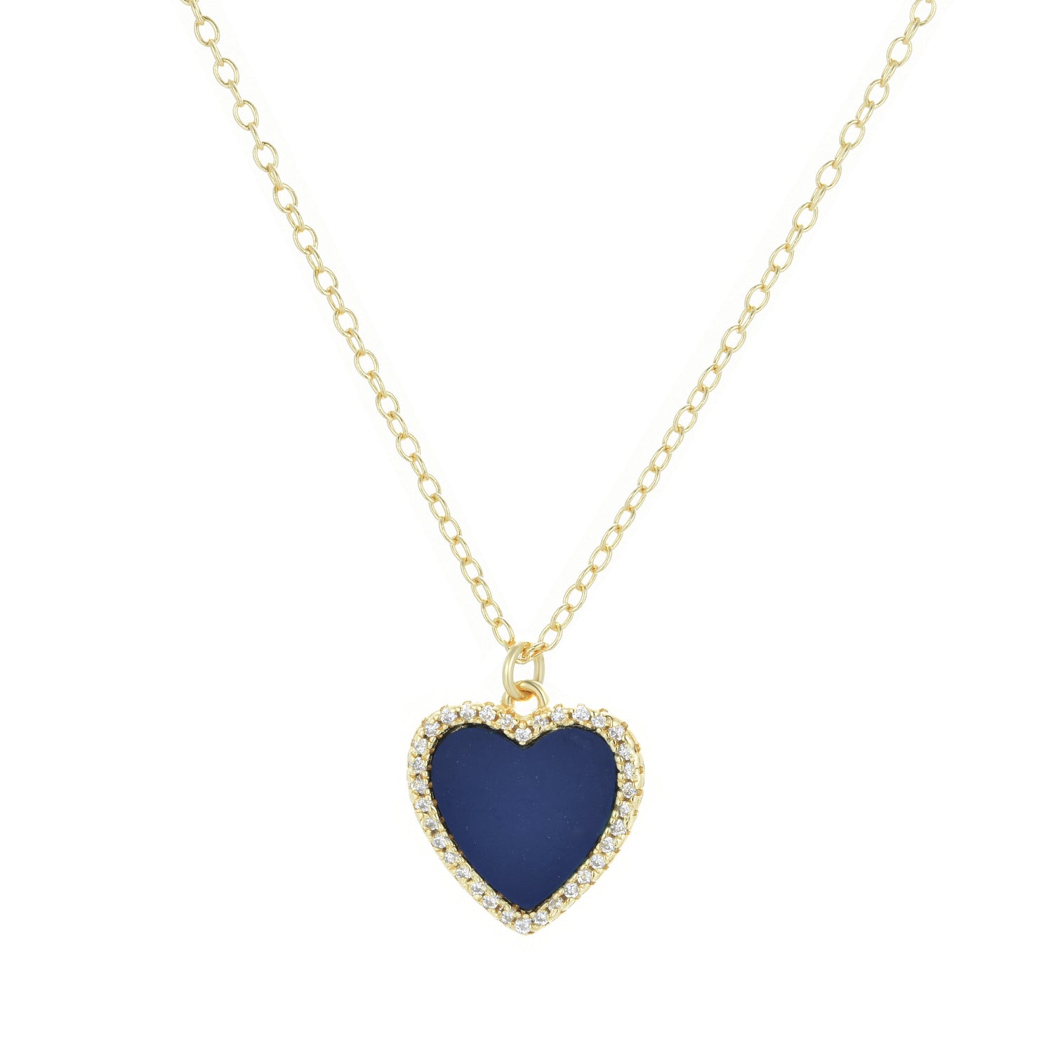 The Blue Lapis Lazuli Heart Necklace With Crystals by Kamaria is a charming piece that combines classic elegance with a pop of color. It features a lab-created, reconstituted blue lapis lazuli heart surrounded by sparkling crystals. The pendant is set in 925 sterling silver and plated in gold. The chain is also 925 sterling silver and is adjustable, making it versatile for both choker and full-length styles. This necklace is perfect for layering or wearing on its own.