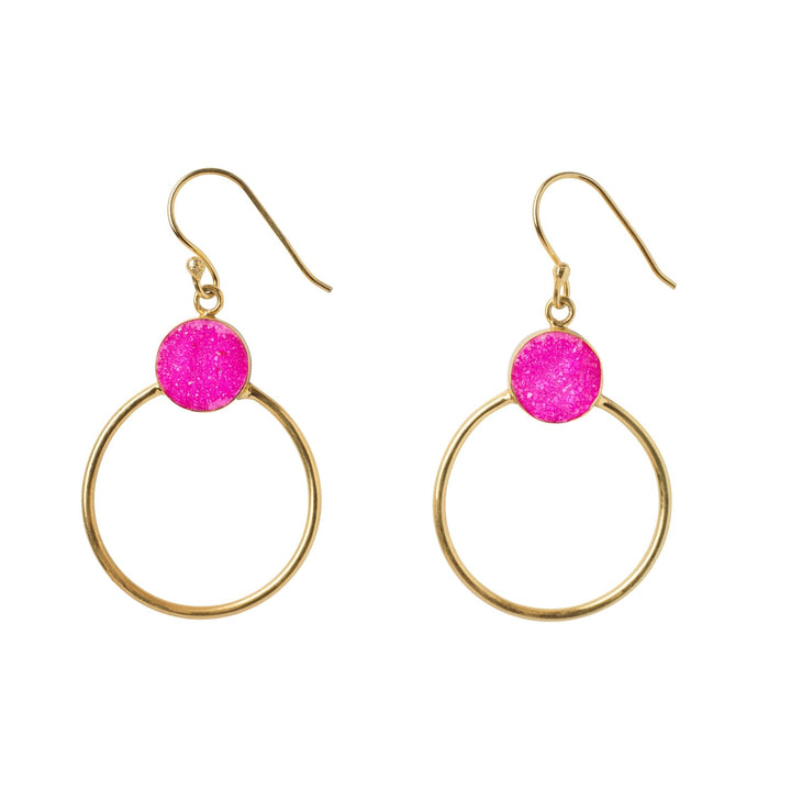 Colour Pop Hot Pink Druzy Gold Hoop Earrings