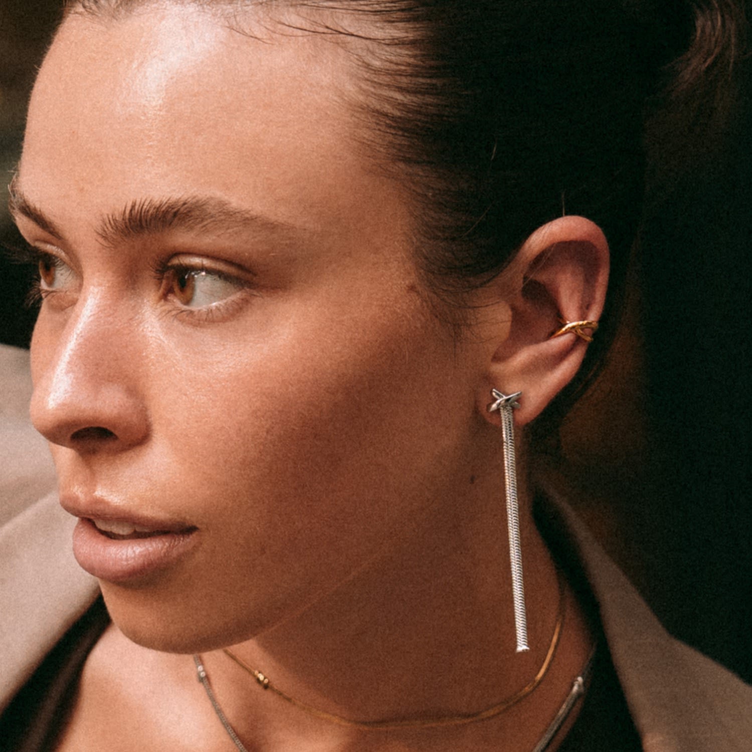 This Minimalism Boa X Ear Cuff in Silver by Me30 embodies modern adaptability with its signature “X” motif, representing life’s mysteries and resilience. Designed for those without piercings, it offers versatility and style freedom—ideal for stacking or wearing solo. Comfortable, lightweight, and boundary-free, it is a piece for anyone wishing to express individuality with ease.