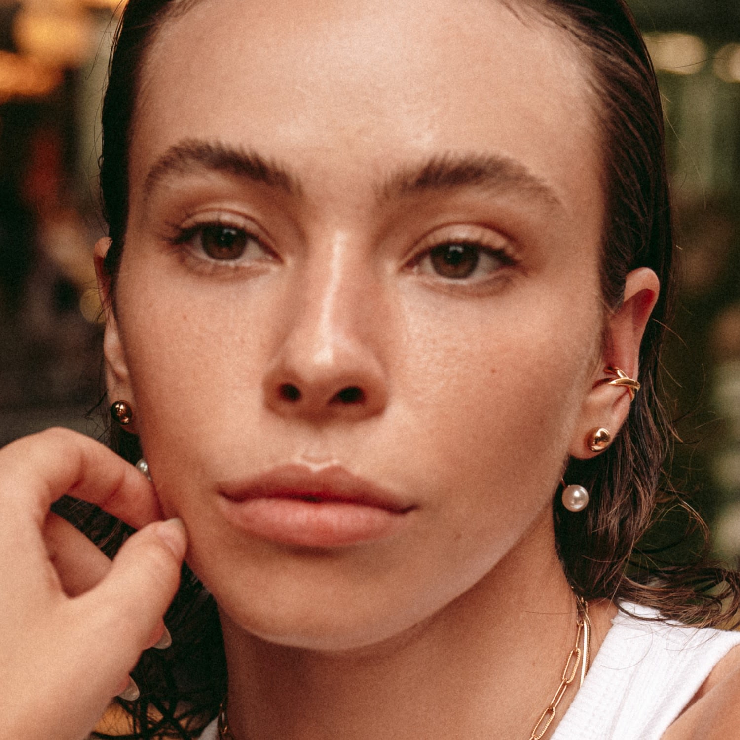 Crafted in hypoallergenic 316L stainless steel with PVD 18k gold plating. Ear cuff design, approx. 13 mm diameter. Sold as a single piece.