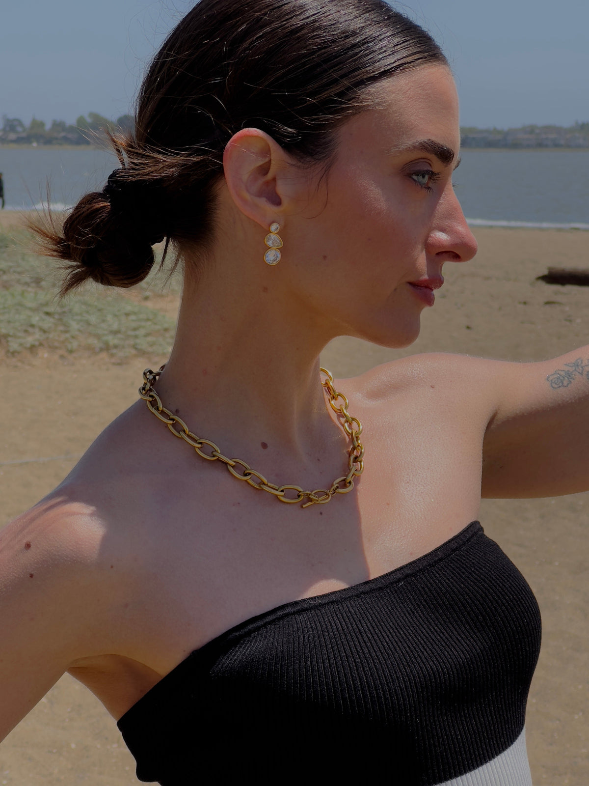 This Lulu Necklace by Tseatjewelry is an everyday bold statement piece. Crafted with oversized, high-shine links, this gold chain necklace adds a confident and powerful touch to any look. It can be layered with other pieces or worn solo, either way, it's a polished power move.