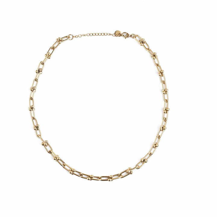 This necklace features a high-shine gold finish. It is lightweight and features an orb-accented chain design.