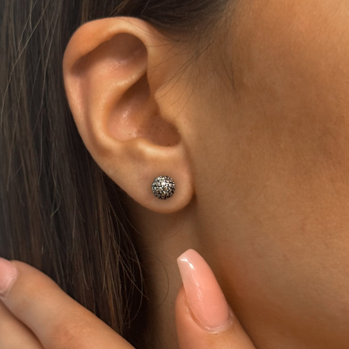 These Sterling Silver Textured Ball Stud Earrings by Unaloe bring minimalist elegance with artisanal detail. Each sphere is finely engraved and hammered to create a granulated texture that reflects light with subtle brilliance. Their compact size makes them versatile for everyday wear or perfect as a second piercing. With Unaloe’s hallmark craftsmanship, they strike the balance between understated style and refined artistry.