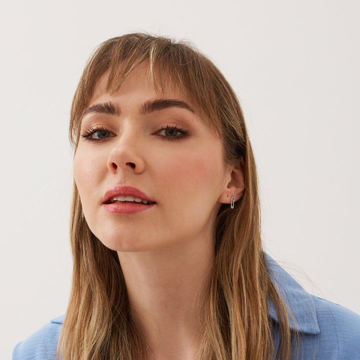 These Sterling Silver Jewelled Mini Safety Pin Stud Earring - Silver by Spero London are trendy and edgy, designed to add a unique "oomph" to your day-to-night outfits. Cast in 925 recycled sterling silver, these studs feature an adorable safety pin design embellished with gleaming zirconias. They have a post-back or butterfly-back lock for a secure, comfortable fit. They are a perfect accessory to express your style with a touch of sparkle.