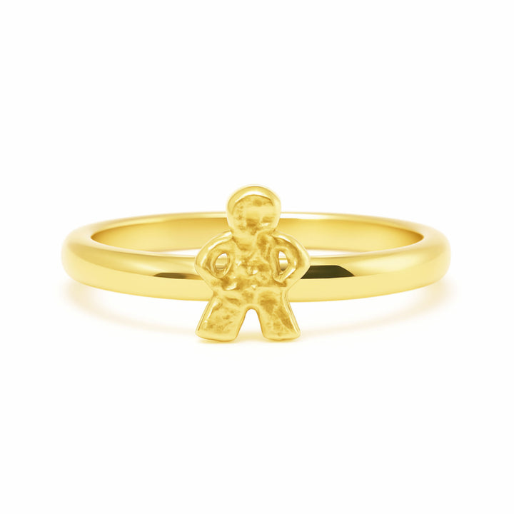 This Boy Ring by Unaloe in gold-plated sterling silver is a tender emblem of love and protection. Handmade in Italy, its adjustable design makes it suitable for any finger and perfect for everyday wear. Pair it with the Girl Ring from the same collection for a symbolic duo that celebrates family bonds and emotional connection.