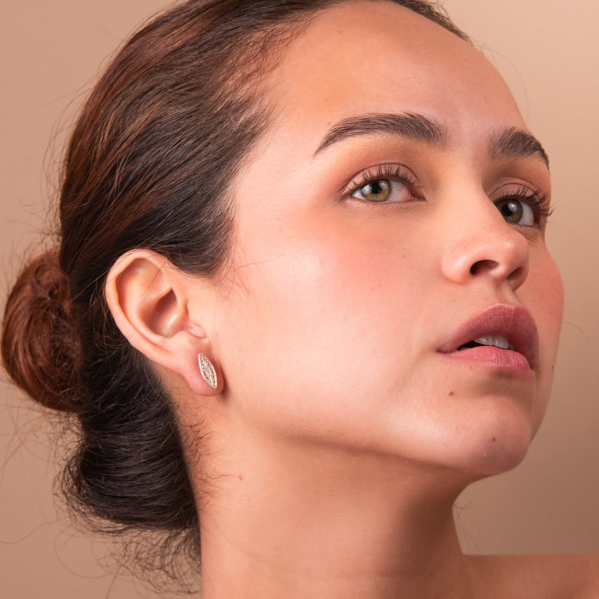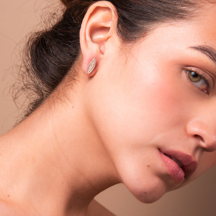 These Studs Golden Leaf by Mamba are a homage to the lush beauty of the tropics. Part of the Candelita collection, each piece is a celebration of exceptional craftsmanship and is uniquely yours due to its handmade nature. These studs offer a golden touch of botanical elegance, bringing a piece of the natural world to your look.