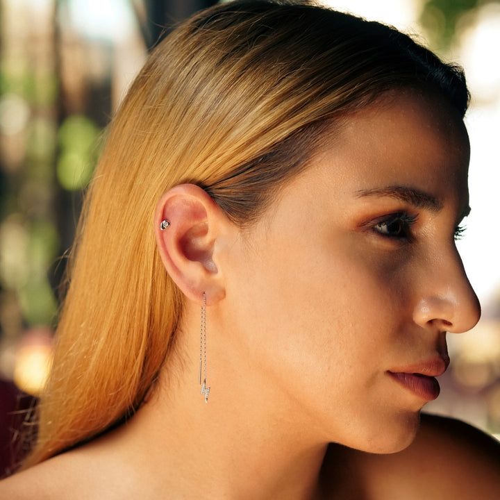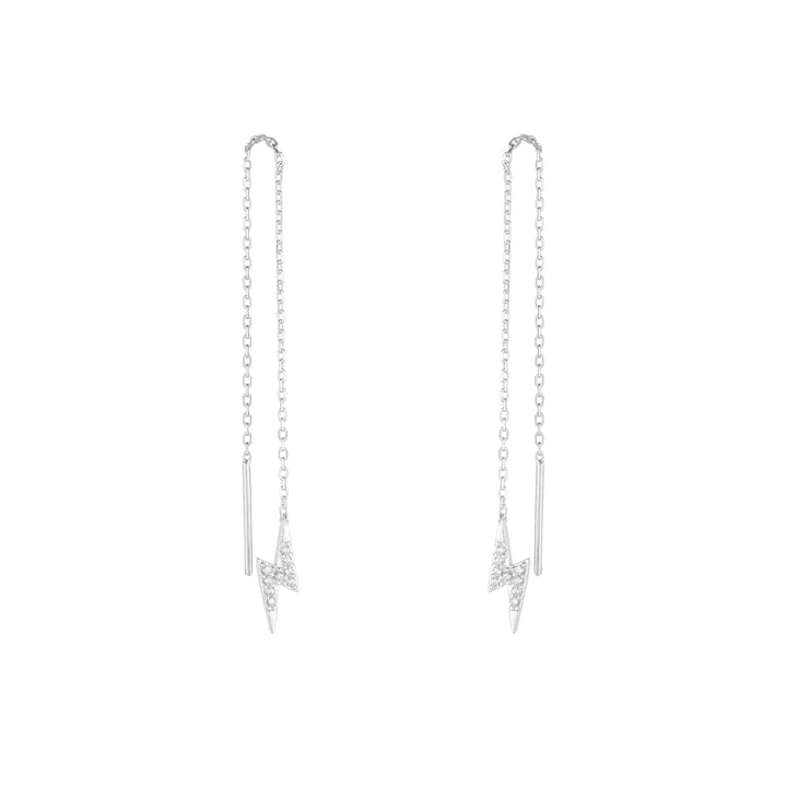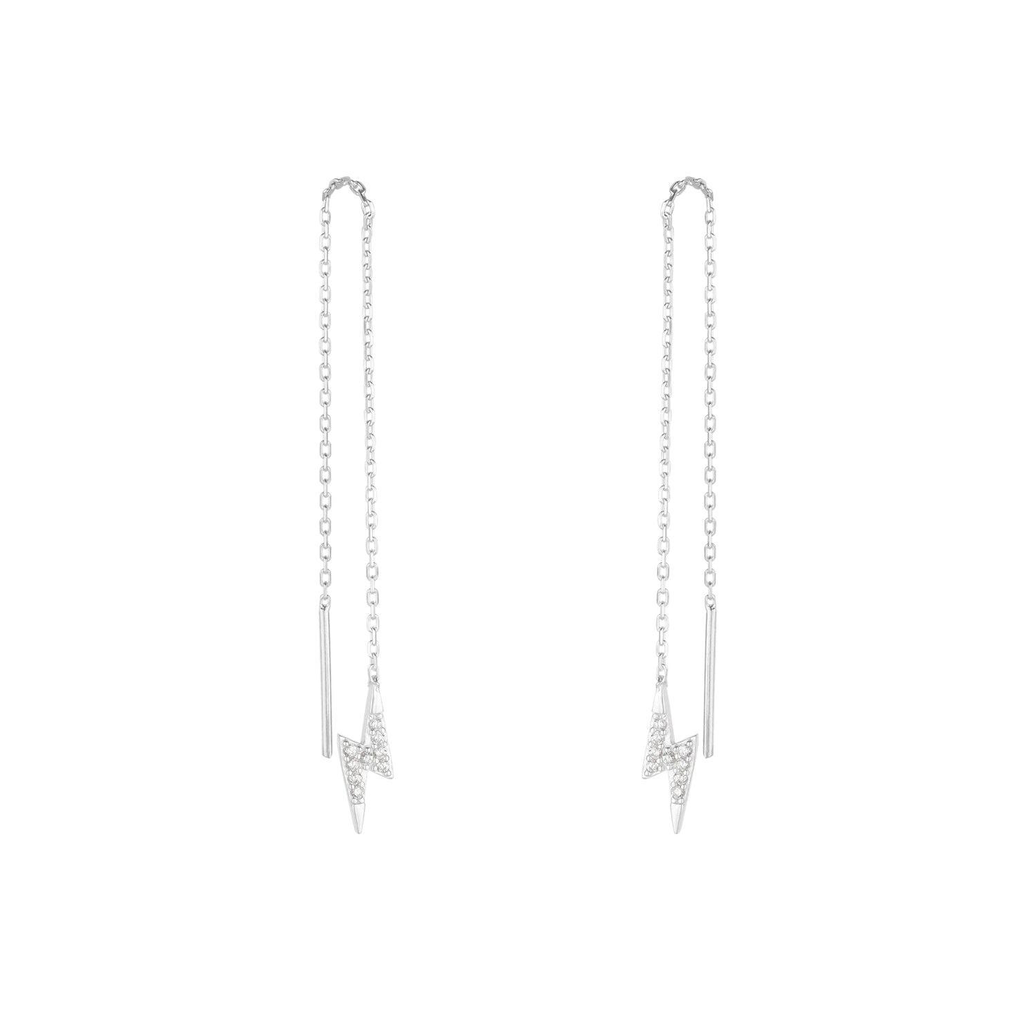 Lightning Bolt Sterling Silver Chain Drop Earring - Silver