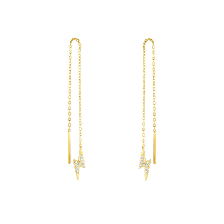 Lightning Bolt Sterling Silver Chain Drop Earring - Gold