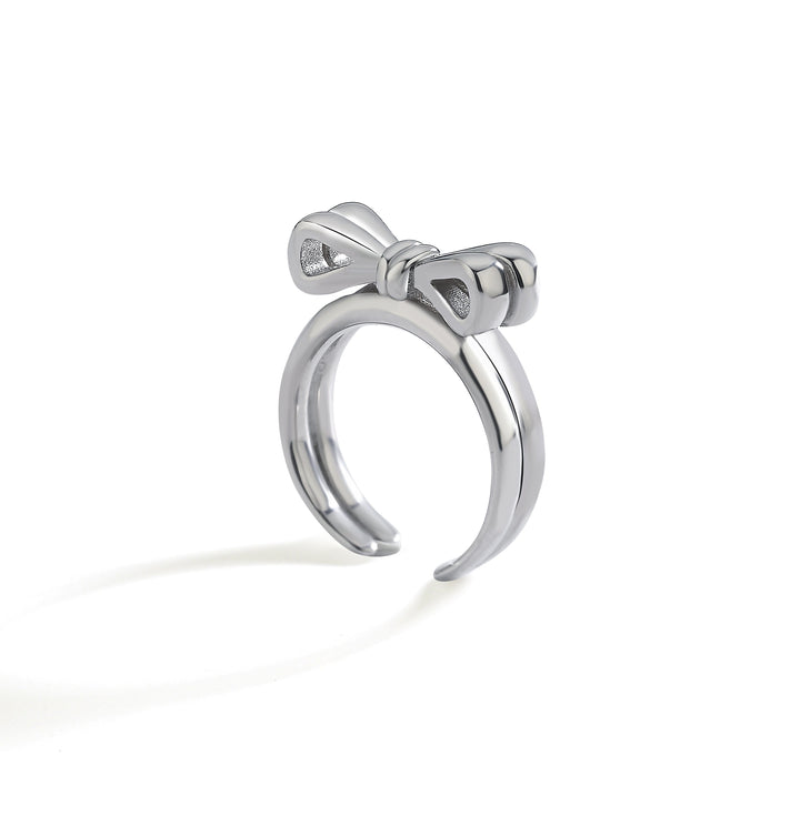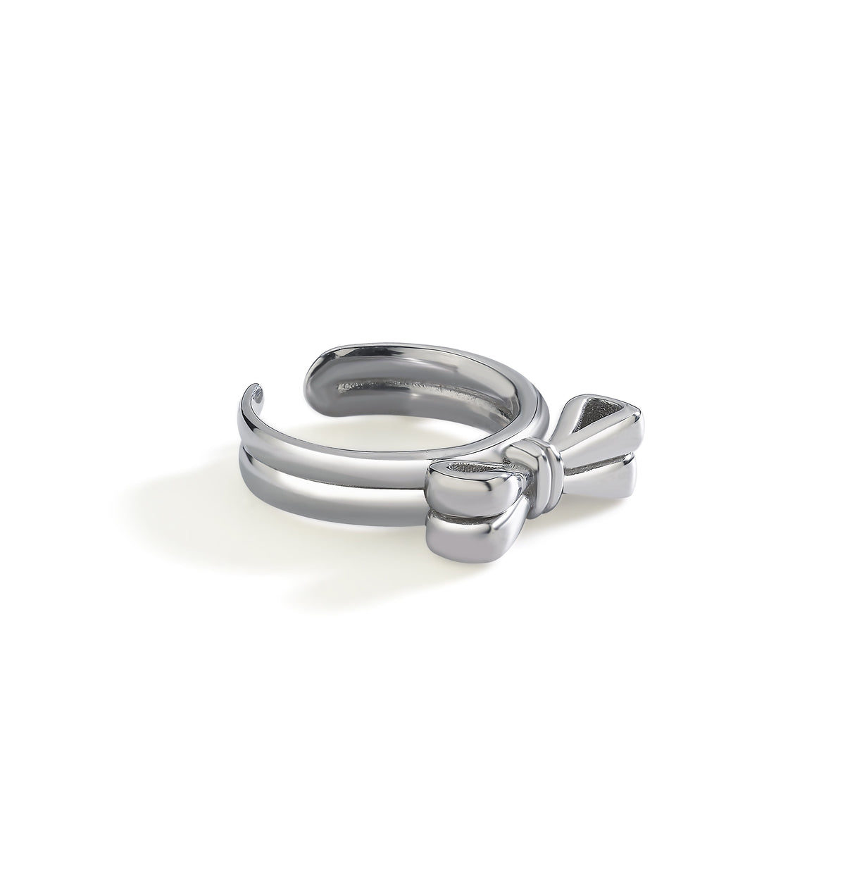 Handcrafted in sterling silver with a high-polish finish. Features a sculpted bow design. Open-ended and slightly adjustable band for fit flexibility.