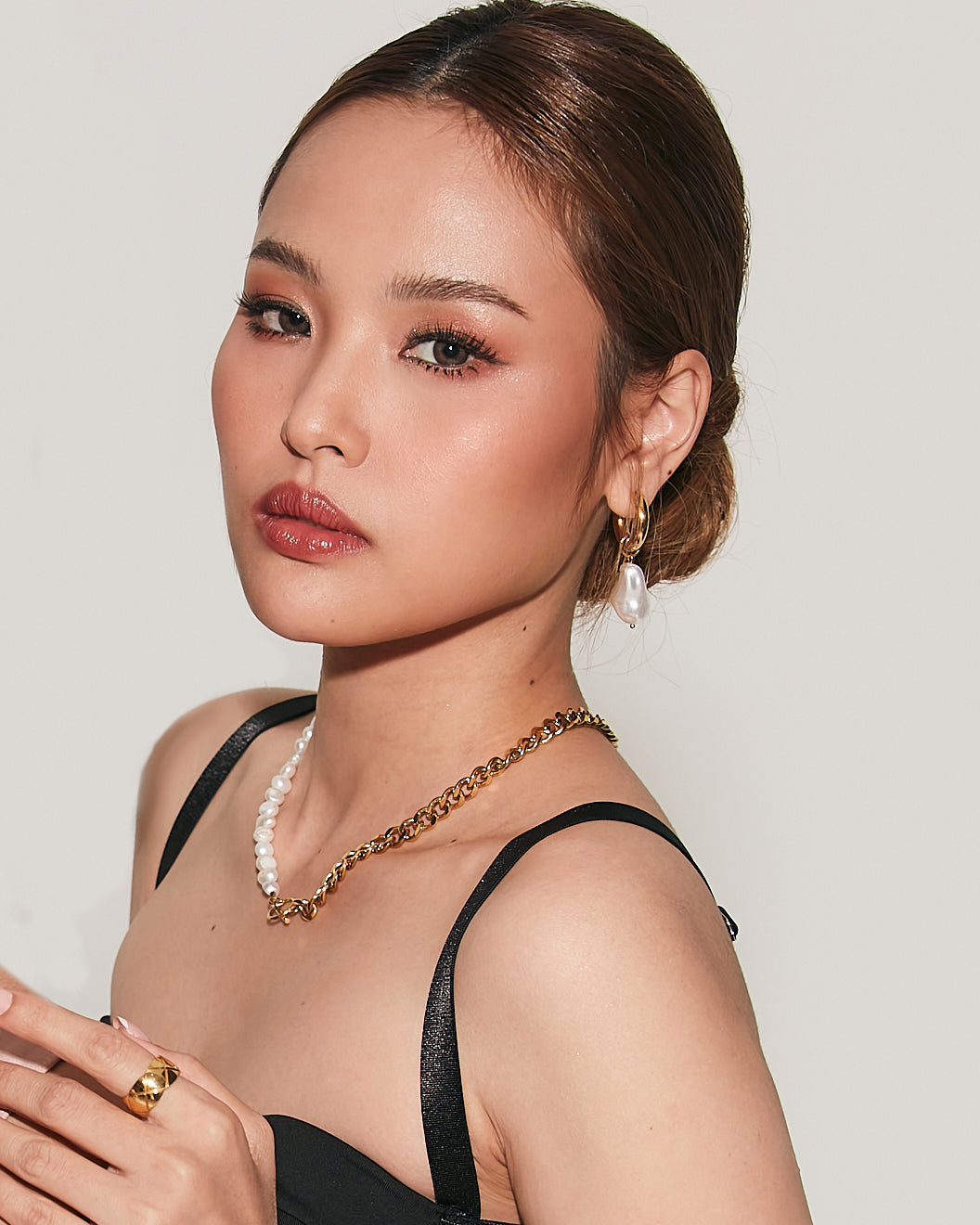 This necklace is made with high-quality 18k gold-coated stainless steel and freshwater oyster pearls. It is hypoallergenic, waterproof, and non-tarnish.