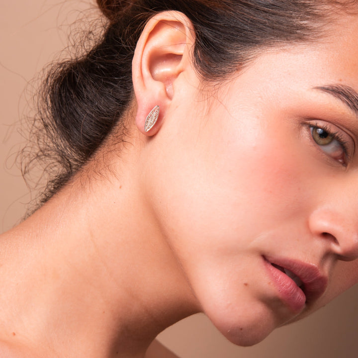 These Studs Silver Leaf by Mamba are a homage to the lush beauty of the tropics. Part of the Candelita collection, each piece is a celebration of exceptional craftsmanship and is uniquely yours due to its handmade nature. These studs offer a touch of botanical elegance, bringing a piece of the natural world to your look.