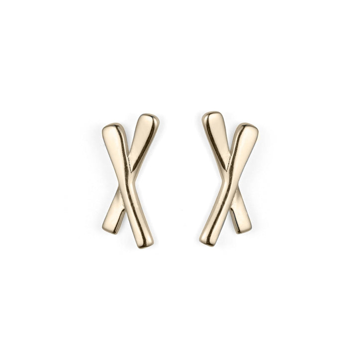 These stud earrings are crafted from gold vermeil. The design is inspired by skis stuck in the snow.