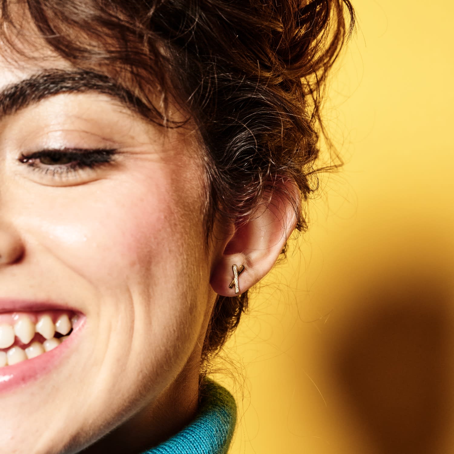 These Snow Kisses Stud Earrings by Toolally are a delicate and unique accessory inspired by Alpine holidays. The earrings are crafted in gold vermeil and resemble a pair of skis stuck in the snow, a special image for those who love mountain getaways. They are a delicate and beautiful set that can be paired with the matching pendant to complete the look.