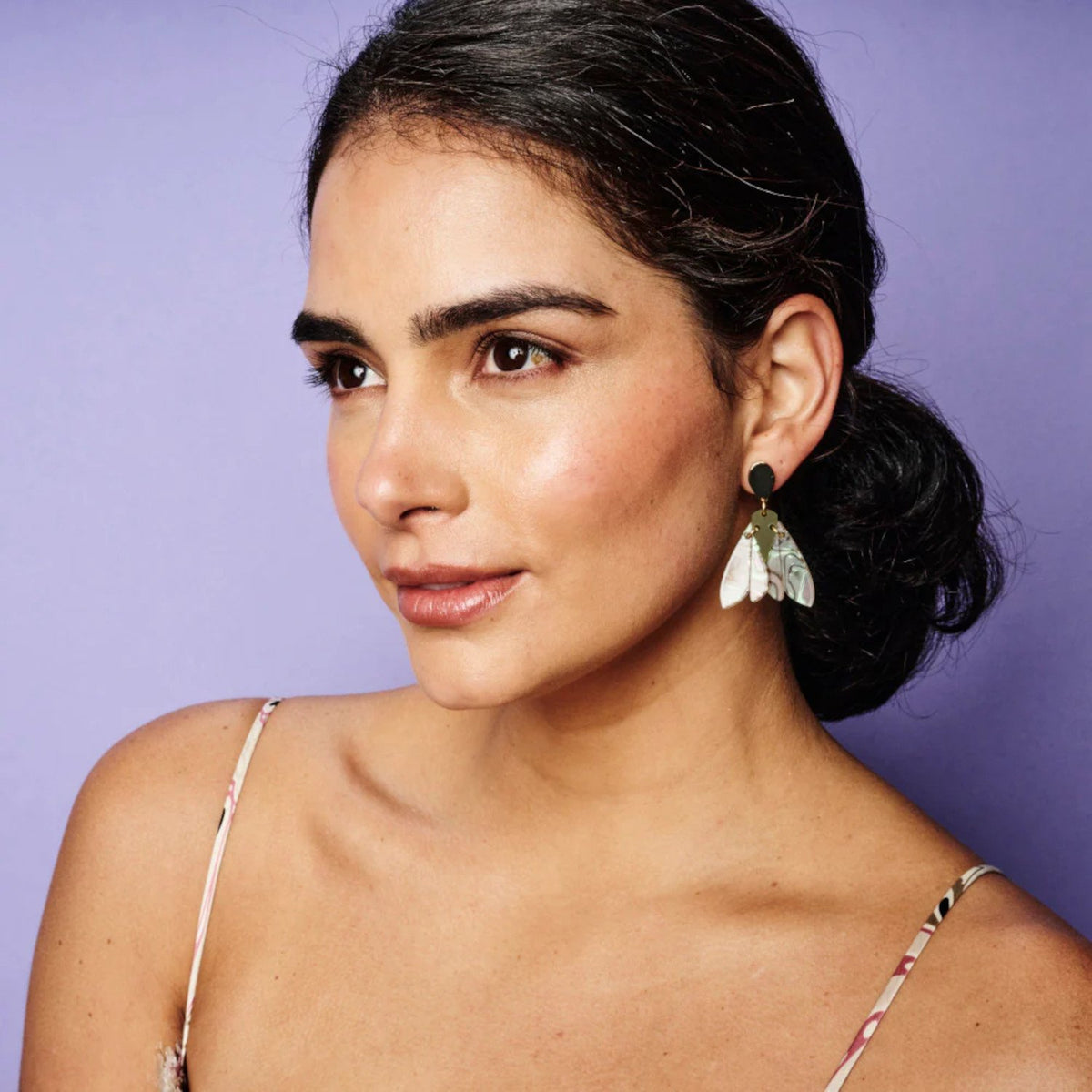 These Gossamer Drop Earrings in Shell & Lime Zest by Toolally embody the delicate yet bold spirit of the brand. Inspired by butterfly wings, they represent transformation, softness, and strength. With their airy design and vibrant colors, they bring a fresh, spring-ready elegance while maintaining their statement-making impact. A piece that feels both ethereal and modern.