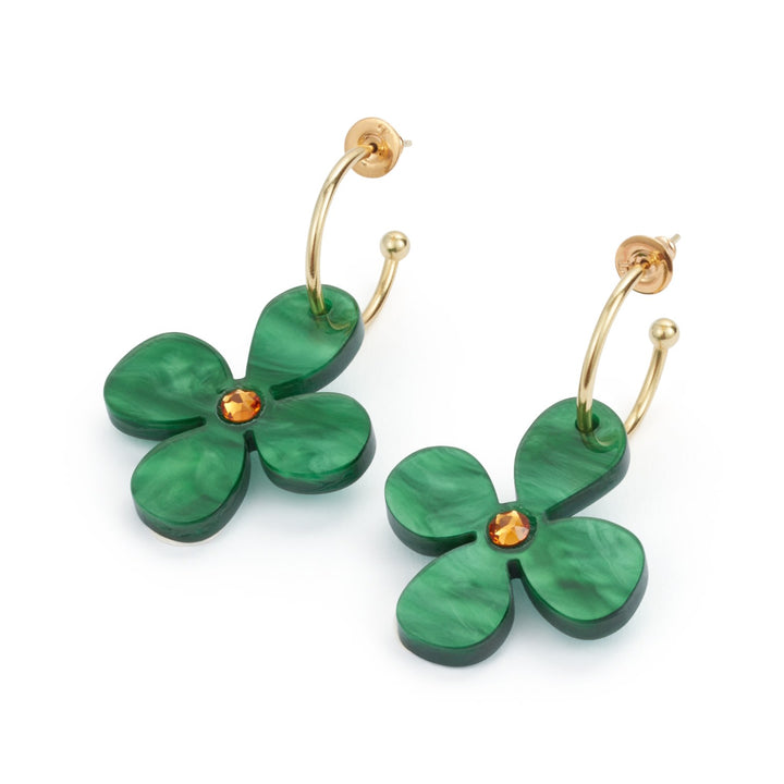 These Daisy Hoop Earrings by Toolally are a playful and charming accessory that adds a touch of whimsical flair to your look. The cute daisy charm and vibrant grass green color make them a perfect choice for summer adventures. They are lightweight and deceptively simple, offering a fun yet elegant statement for a dinner by the beach or a casual outing.