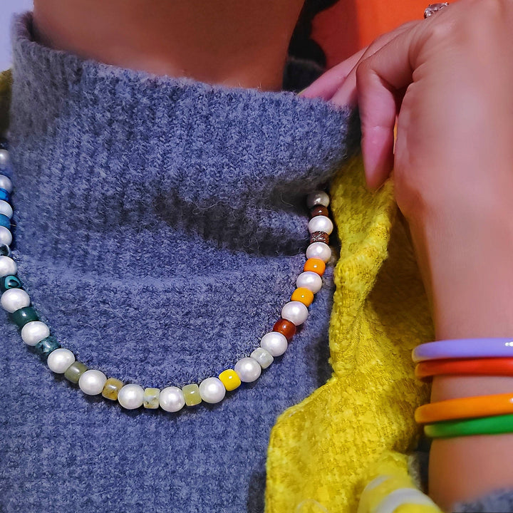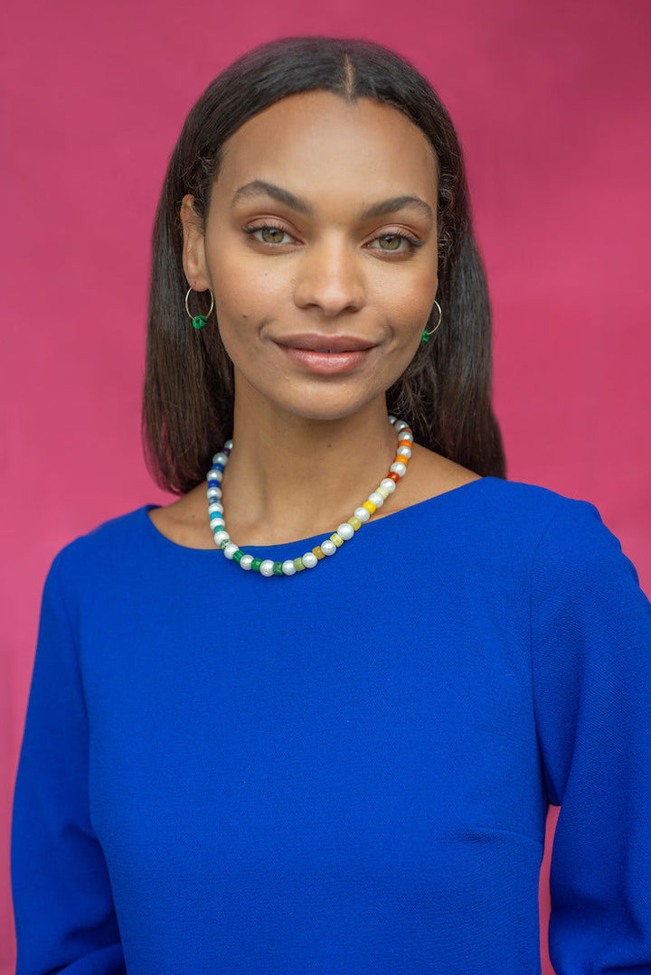 This Freshwater Pearl Rainbow Necklace by Kris Nations is a vibrant and joyful accessory that celebrates nature's unique beauty. The lustrous freshwater pearls are beautifully complemented by a medley of semi-precious gemstone beads in a rainbow of colors. The adjustable length and gold-filled clasp offer a personalized and secure fit. The design is a fresh, modern take on classic pearls, making this piece a fun and meaningful addition that brings a touch of color and elegance to any look.